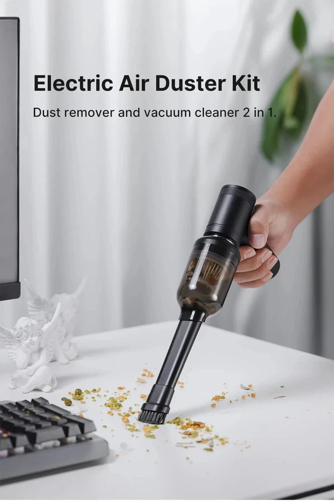 This electric air duster kit is a game-changer for keeping gadgets and tight spaces spotless! The powerful blower paired with five handy attachments makes cleaning cameras, keyboards, and even car vents effortless. The nozzles fit snugly, and the dust collector traps debris perfectly. Lightweight yet sturdy, it’s a must-have for tech lovers and neat freaks—no more canned air mess!