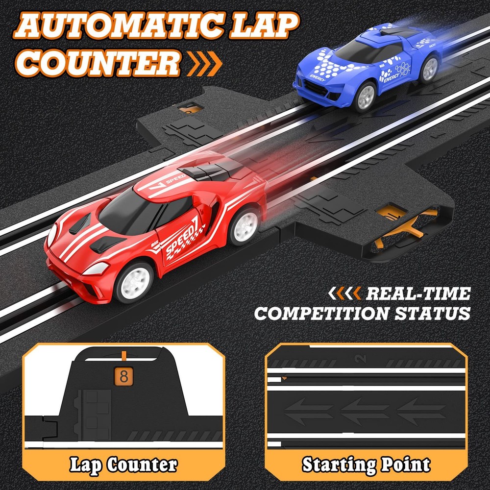This slot car race track set is a blast! The realistic tracks, including an awesome double-layer overpass, make racing super exciting. The automatic lap counter keeps the competition fair while letting kids focus on the fun. Perfect for two players, it delivers high-speed thrills and endless entertainment. Great for kids and even adults who love racing action!
