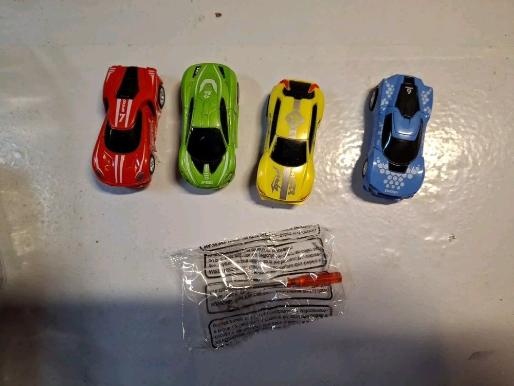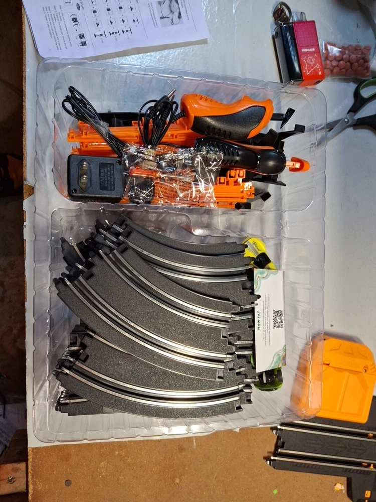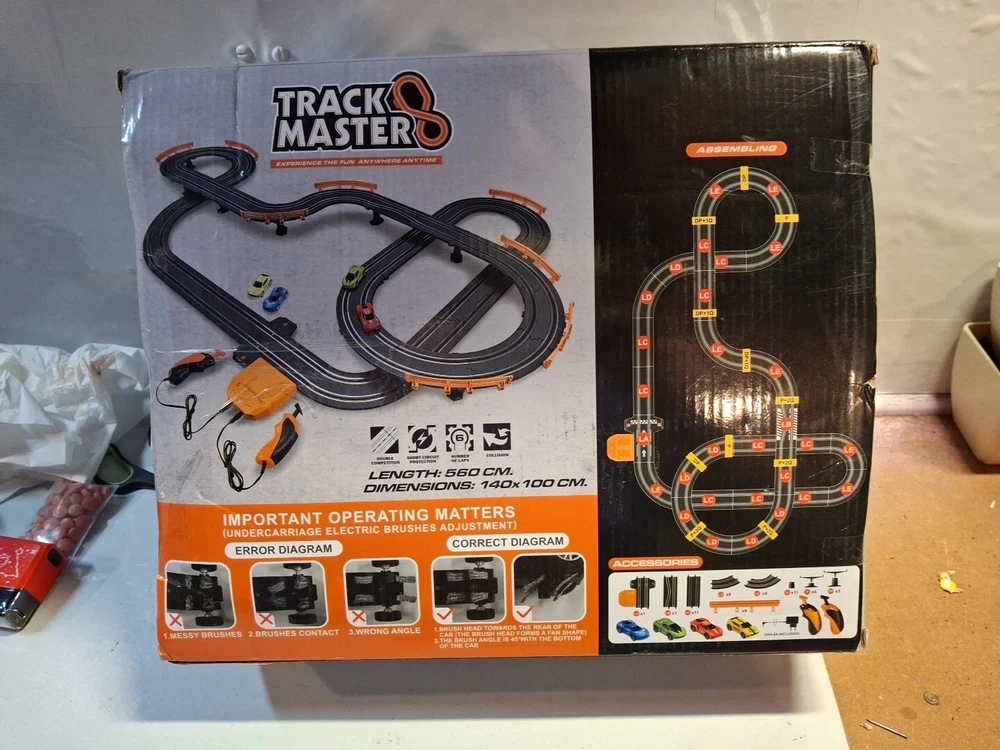 This slot car set is a blast! The four high-speed cars run smoothly on the track, and I love the option to power it with batteries or the included adapter. Everything arrived in perfect condition, tested and ready to race. Great for hours of fun—just add AA batteries or plug in and go. Definitely recommend for kids and adults who love fast-paced action!