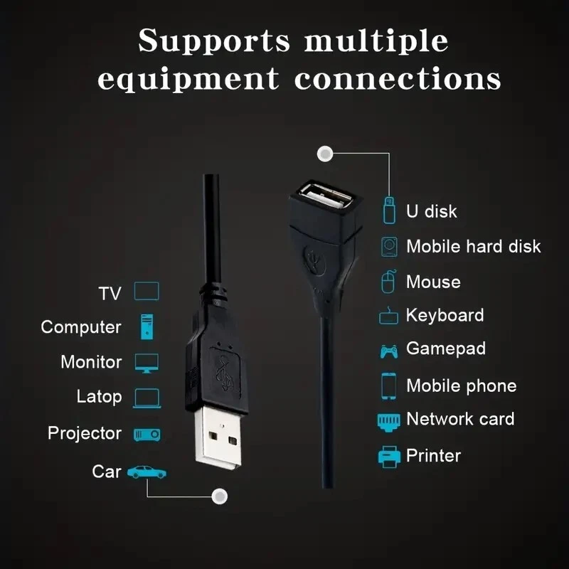 This USB extension cable is a game-changer! The sturdy nickel-plated connectors ensure a secure fit, and the high-speed USB 2.0 performance is flawless. Perfect for extending reach to printers, scanners, or other peripherals without lag. The black design blends seamlessly with any setup, and the backwards compatibility means it works with older devices too. Great quality at an unbeatable price—highly recommend for anyone needing extra length!