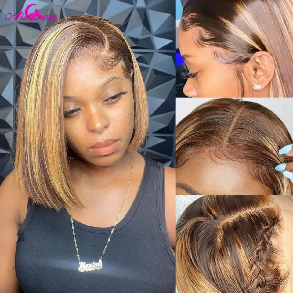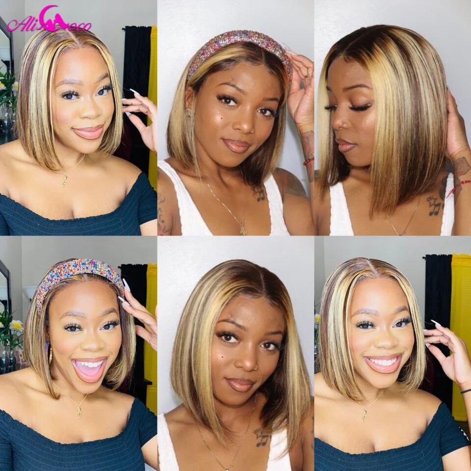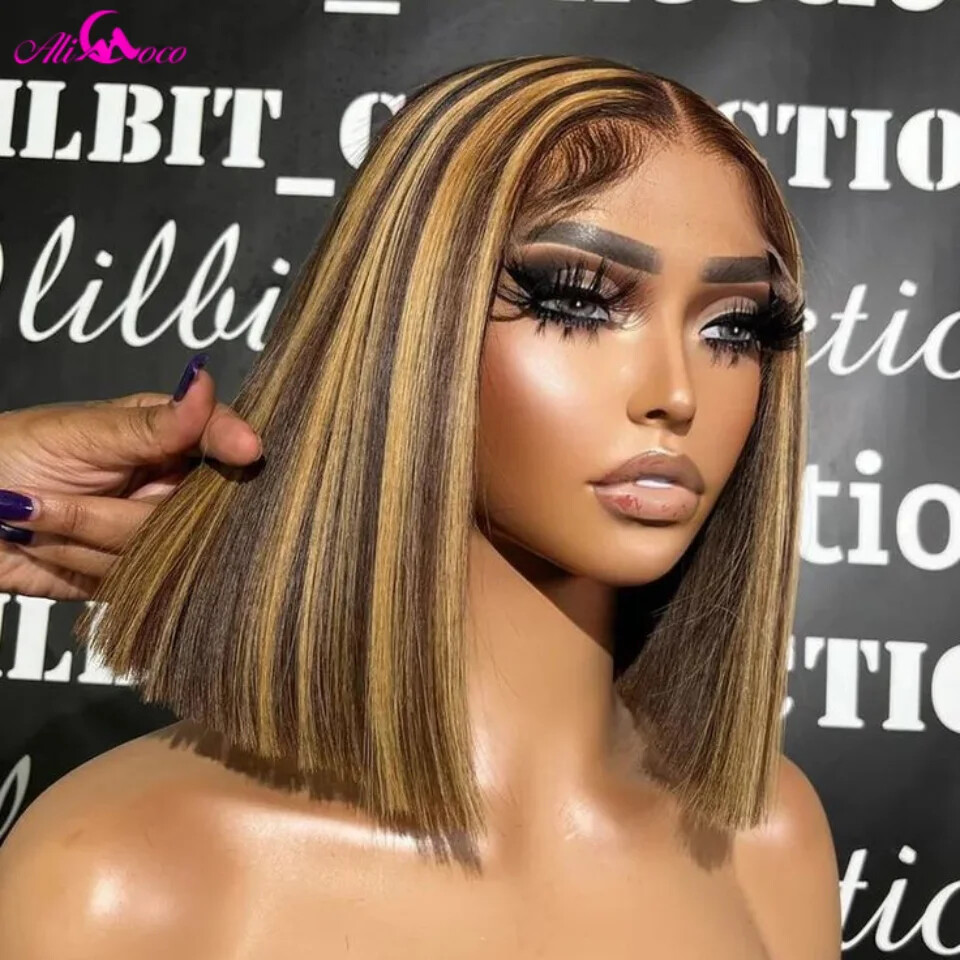 Highlight Blonde Short Bob Wig Straight Lace Front Human Hair Wigs Brazilian Wig