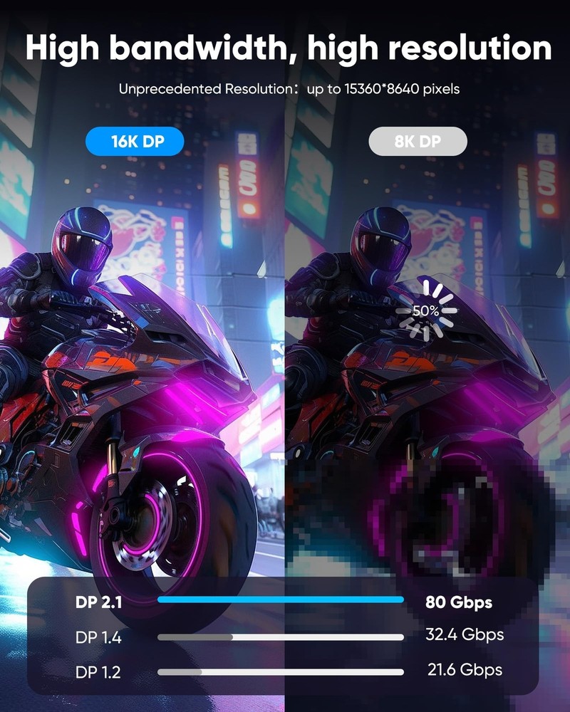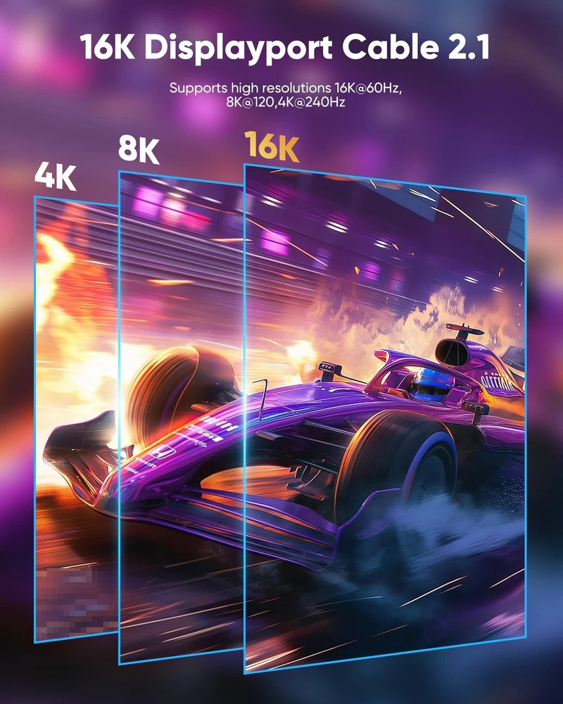 Highwings 16K DisplayPort 2.1 Cable 6FT - 16K@60Hz 8K@120Hz 4K HDR VRR DSC 1.4