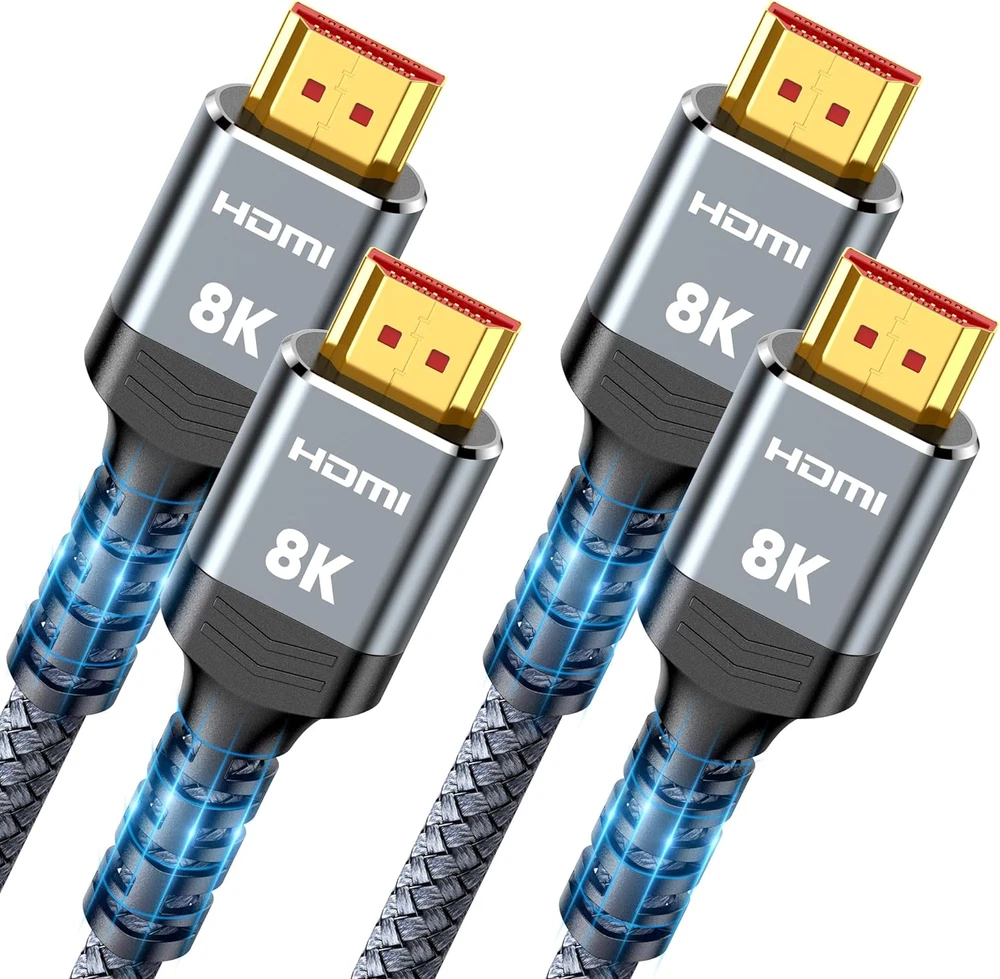 Highwings 8K 2.1 HDMI Cable 3.3FT/1M 2-Pack, 48Gbps High Speed HDMI Braided Nylo