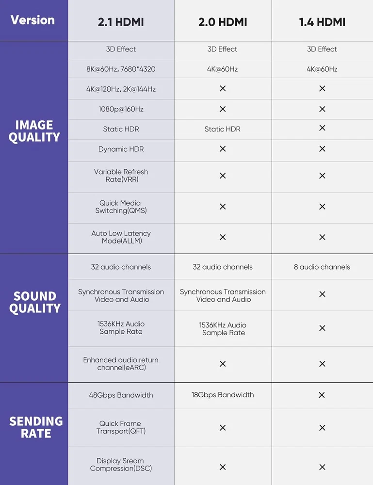 UHD 8K HDMI Cable 2.1 : Highwings 8K Ultra High Speed HDMI 2.1 Cable uses the most cutting-edge technology, is compatible with 8K@60HZ and 4K@120HZ, clearly displays every paricle, and accurately processes every signal source Upgrade Revolution-HDMI 2.1:Highwings HDMI Cable 3.3ft conforms to the standard HDMI 2.1 version, its transmission speed has a qualitative leap from 18Gbps to 48Gbps (6GB/s) directly, there will no longer be stuck or dropped frames when watching video High-Quality Materials:This 3.3ft HDMI Cable uses the most popular classic style, The upgraded strength of the aluminum alloy shell and the tail's anti-bending design make it more durable.The military grade tensile nylon material greatly extends its life Design For Game Enthusiasts: This HDMI cord can achieve a super smooth picture of 4K@120Hz and 8K@60Hz. Its latest game mode supports variable refresh rate, maximizes the value of the graphics card and CPU, elevate gaming experience to a whole new level The Ultimate Perfectionist: Every HDMI cable even every part has been put through rigorous testing. We've combined every flawless part into a perfect 8K HDMI cable, after pass the performance tests in the laboratory and you get a perfect HDMI cable 2-pack Product Description The video showcases the product in use. The video guides you through product setup. The video compares multiple products. The video shows the product being unpacked. The latest technologies are combined on this 8K HDMI Cable 8K Resolution The experience brought by 8K picture quality is more advanced than 4K(7,680 × 4,320). It is not limited to the present. More, it is ready for the future 120HZ Refresh Rate In 4K image quality, the refresh rate can reach 120HZ. It is twice as high as the ordinary 4K cable, which means you will see a smoother and smoother picture. Dynamic HDR With the support of dynamic HDR and 12bit color depth processing, all images will become more vivid, you will experience a wider color gamut, brighter picture, more obvious brightness and more delicate picture contrast from this 8K HDMI Cable 48Gbps Speed Transmission The bandwidth of the HDMI2.1 version has achieved a qualitative leap from 18Gbps to 48Gbps. This means that a 6GB movie can be transferred in just one second, without any need to consider the picture delay. Mirror Mode You can copy the screen of a screen to a larger screen, in order to display a more high-definition screen Game Mode In this mode, the cable will be adjusted as the picture changes, adjusted to the most suitable refresh rate to ensure the smoothest and finest picture Extended Mode More efficient split-screen operation can be done at work, saving a lot of time for your work In Addition 3D, eARC, Ethernet, HDCP2.2/2.3, VRR and other functions are available
