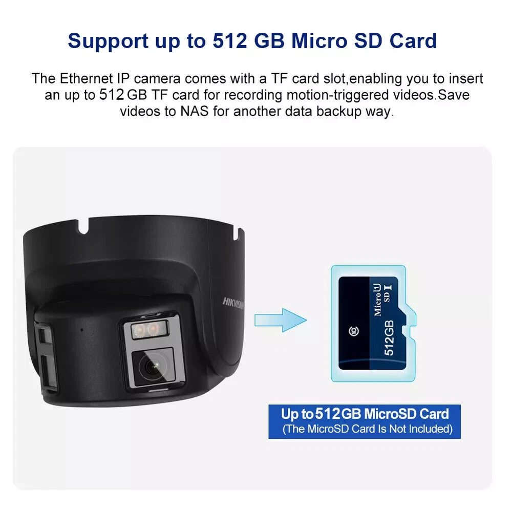 SAFE & SECURE SHOPPING 100% SATISFACTION GUARANTEED FAST SHIPPING Store Categories Store Categories Other IP Camera NVR You may also like Hikvision DS-2DE2A404IW-DE3/W(C0)(S6)(C) 4MP 4xZoom WiFi Mic PTZ IP Camera USA 152.0 USD Free shipping Hikvision DS-2CD2387G2P-LSU/SL 8MP ColorVu Panoramic IP Camera 2-Way Audio Black 209.0 USD Free shipping NEW Dahua PFB205W-E Wall Mount Bracket for IPC-HDW2841T-S IPC-HDW2441T-S Camera 89.0 USD Free shipping Dahua SD2A500HB-GN-AW-PV-S2 5MP Smart Dual Light WiFi PT Outdoor Security Camera 130.0 USD Free shipping Dahua OEM IPC-HDBW2831R-ZAS-S2 4K 8MP 5X ZOOM IR IP Camera Starlight MIC Dome 138.0 USD Free shipping Dahua IPC-HFW2441T-ZS 4MP Starlight 5x Zoom WizSense IP Bullet Camera PoE SMD+ 38.0 USD Free shipping Hikvision 4K 180° DS-2CD2387G2P-LSU/SL ColorVu Panoramic 8MP IP Camera Dual lens Product Description ★Tips > APP Available: Hik-connect, Guard viewer, IVS-4200 > Search Tool:SADP (search device and change IP address) > Default IP:192.168.1.64 > Camera lens: Dual lens: 4 mm > Product is 100% Original Hikvision, Support upgrade by Hikvision Official Website > If there is any problem with use, please contact with us at any time. we have very professinal engineer, can help you set online. Product Image: 8MP Ultra HD (low illuminance, high image definition) Features: 8 MP Panoramic ColorVu Fixed Turret Network Camera High quality imaging with 8 MP resolution One image that presents all the scenes covered by the camera 24/7 colorful imaging Efficient H.265+ compression technology Clear imaging against strong back light due to 130 dB WDR technology Focus on human and vehicle classification based on deep learning Active strobe light and audio alarm to warn intruders off Water and dust resistant (IP67) Specifications: Camera Image Sensor 2 × 1/1.8" Progressive Scan CMOS Max. Resolution 5120 × 1440 Min. Illumination Color: 0.0005 Lux @ (F1.0, AGC ON),0 Lux with light Shutter Time 1/3 s to 1/100,000 s Angle Adjustment Pan: -30° to 30°,tilt: -75° to 75° Lens Lens Type Fixed focal lens, Dual lens: 4 mm Focal Length & FOV 4 mm, horizontal FOV: 180°, vertical FOV: 44° Lens Mount M16 Iris Type Fixed Aperture F1.0 Depth Of Field 3.6 m to ∞ DORI DORI 4 mm, D: 77 m, O: 30 m, R: 15 m, I: 7 m Illuminator Supplement Light Type White Light Supplement Light Range Up to 30 m Smart Supplement Light Yes Video Main Stream When WDR is On: 50 Hz: 12.5 fps (5120 × 1440) 60 Hz: 15 fps (5120 × 1440) When WDR is Off: 50 Hz: 20 fps (5120 × 1440) 60 Hz: 20 fps (5120 × 1440) Sub-Stream When WDR is On: 50 Hz: 12.5 fps (1920 × 536, 960 × 272) 60 Hz: 15 fps (1920 × 536, 960 × 272) When WDR is Off: 50 Hz: 20 fps (1920 × 536, 960 × 272) 60 Hz: 20 fps (1920 × 536, 960 × 272) Video Compression Main stream: H.265+/H.265/H.264+/H.264 Sub-stream: H.265/H.264/MJPEG Video Bit Rate 32 Kbps to 16 Mbps H.264 Type Baseline Profile,Main Profile,High Profile H.265 Type Main Profile Bit Rate Control CBR,VBR Scalable Video Coding (SVC) H.264 and H.265 encoding Region Of Interest (ROI) 1 fixed region(s) for main stream Audio Audio Type Mono sound Audio Compression G.711/G.722.1/G.726/MP2L2/PCM/MP3/AAC-LC Audio Bit Rate 64 Kbps (G.711ulaw/G.711alaw)/16 Kbps (G.722.1)/16 Kbps (G.726)/32 to 192 Kbps (MP2L2)/8 to 320 Kbps (MP3)/16 to 64 Kbps (AAC-LC) Audio Sampling Rate 8 kHz/16 kHz/32 kHz/44.1 kHz/48 kHz Environment Noise Filtering Yes Network Protocols TCP/IP, ICMP, HTTP, HTTPS, FTP, DHCP, DNS, DDNS, RTP, RTSP, NTP, UPnP, SMTP, IGMP, 802.1X, QoS, IPv6, UDP, Bonjour, SSL/TLS, PPPoE, SNMP, WebSocket, WebSockets Simultaneous Live View Up to 6 channels API Open Network Video Interface (Profile S, Profile G, Profile T),ISAPI,SDK,ISUP User/Host Up to 32 users 3 user levels: administrator, operator, and user Security Password protection, complicated password, HTTPS encryption, 802.1X authentication (EAP-MD5), watermark, IP address filter, basic and digest authentication for HTTP/HTTPS, WSSE and digest authentication for Open Network Video Interface, RTP/RTSP over HTTPS, control timeout settings, security audit log, TLS 1.2, host authentication (MAC address) Network Storage NAS (NFS, SMB/CIFS),Auto Network Replenishment (ANR),NVR, Together with high-end Hikvision memory card, memory card encryption and health detection are supported. Client iVMS-4200,Hik-Connect,Hik-Central Web Browser Plug-in required live view: IE 10, IE 11 , Plug-in free live view: Chrome 57.0+, Firefox 52.0+, Local service: Chrome 57.0+, Firefox 52.0+ Image Image Parameters Switch Yes Image Settings saturation,brightness,contrast,sharpness,gain,white balance,adjustable by client software or web browser Day/Night Switch Day,Night,Auto,Schedule Wide Dynamic Range (WDR) 130 dB SNR ≥ 52 dB Image Enhancement BLC,HLC,3D DNR Interface Ethernet Interface 1 RJ45 10 M/100 M self-adaptive Ethernet port On-Board Storage Built-in memory card slot, support microSD/microSDHC/microSDXC/TF card, up to 256 GB Built-In Microphone Yes Built-In Speaker Max. power consumption: 1.2 W, max. sound pressure: 10 cm: 95 dB Audio 1 input (line in), terminal block, max. input amplitude: 3.3 Vpp, input impedance: 4.7 KΩ, interface type: non-equilibrium, 1 output (line out), terminal block, max. output amplitude: 3.3 Vpp, output impedance: 100 Ω, interface type: non-equilibrium Alarm 1 input, 1 output (max. 24 VDC, 1 A) Reset Key Yes Event Basic Event Motion detection (support alarm triggering by specified target types (human and vehicle)),alarm input and output,flashing alarm light output, audible alarm output, exception Smart Event Line crossing detection, intrusion detection, region entrance detection, region exiting detection (support alarm triggered by specified target types (human and vehicle)), scene change detection Linkage Upload to FTP/NAS/memory card,notify surveillance center,send email,trigger alarm output,trigger recording,trigger capture,audible warning,white light flashing Deep Learning Function Perimeter Protection Line crossi