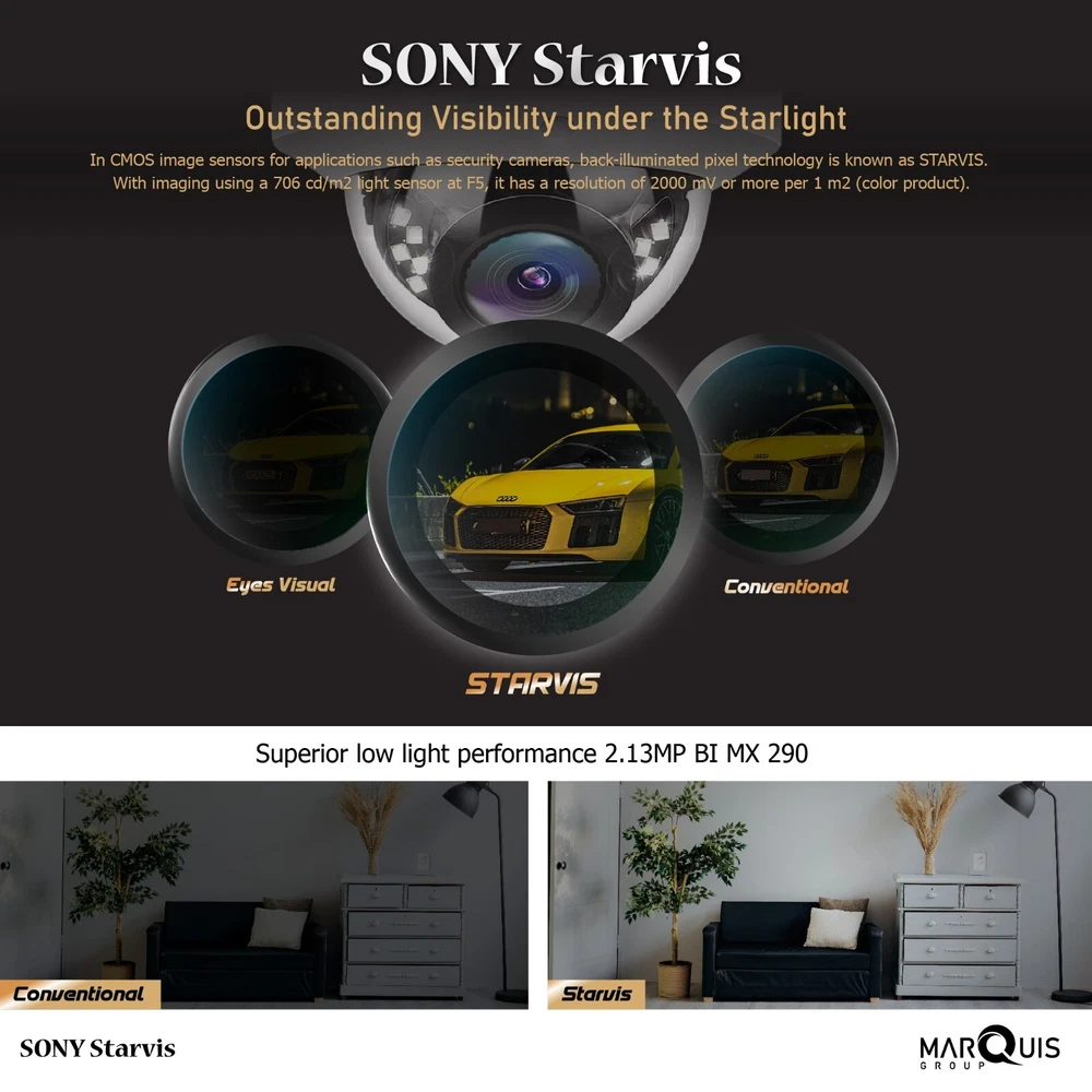 Features 1/2.8" Sony IMX335 CMOS se Full HD resolution 3072 x 204 Ultra low illumination 0.01Lu Day/Night (ICR), AWB, AGC, BLC, 2D/3D-DNR, IR-CU D-WDR, Motion Detection, Privacy Mask, RTSP and Onvif 17.06 compatible H.265/H.264 dual-stream media s Easy-to-use P2P Cloud s Multi web browser, PC Client, mobile APP Optional customization Lens/Audio/Alarm/Storage/POE, etc Lightning protection 4000V IK10 vandalproof and IP66 waterproof 18 pcs SMD IR Leds, IR distance 20-30 meters HD 2.8mm fixe