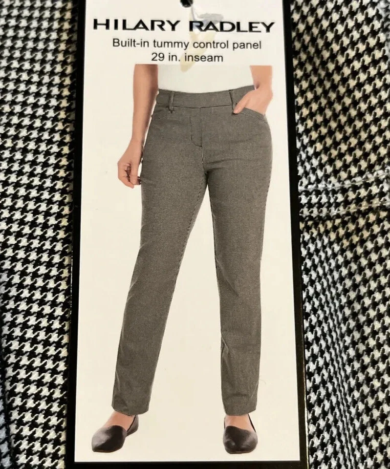 Hilary Radley Women's Mid Rise Pull-On Ankle Built-in Tummy Control Pants Size: XX-Large Color: Black & Off-White Combo Contents: Shell: 72% Viscose / 12% Polyester / 12% Nylon / 4% Elastane Mesh: 82% Nylon / 18% Spandex