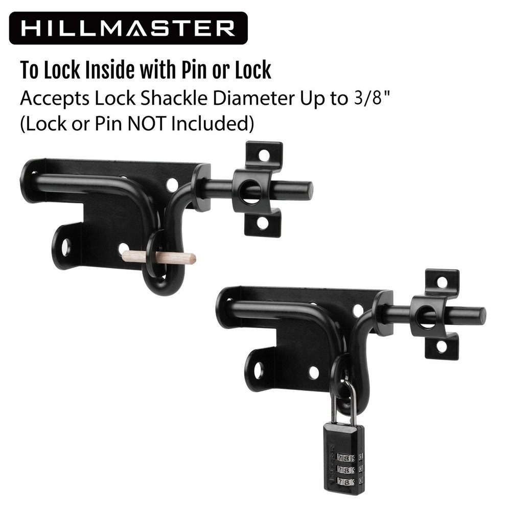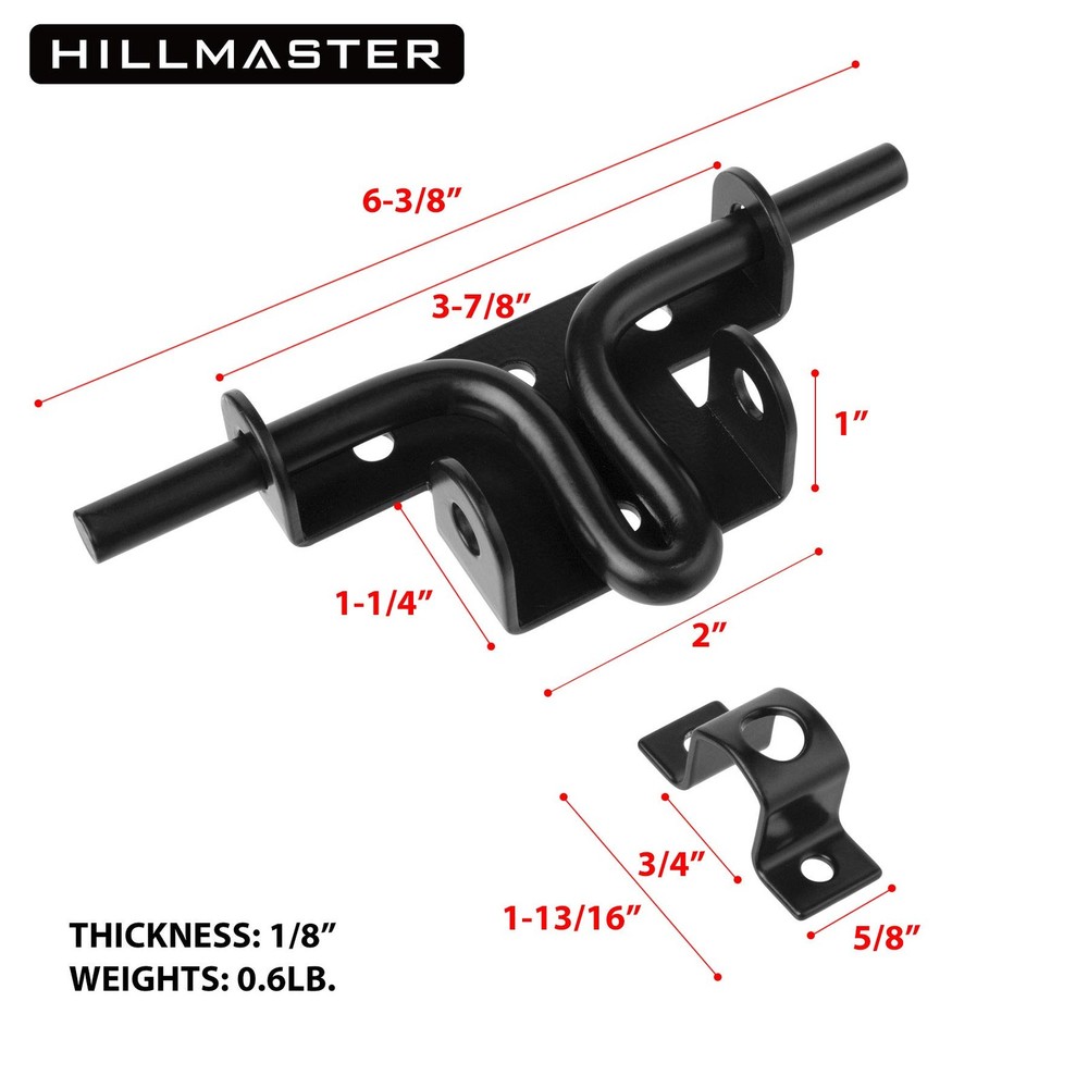 Package Includes: 1x Latch 1x Bar 1x Pull Ring with Wire 1x Installation Instruction 2x 1.26"(30mm) Screws and 6x 1.5"(38mm) Screws Multipurpose for Security: ➤Prevent children from getting into the pool area for safety. ➤Built a gate for the deck to keep the younger kids away from the stairs. ➤Used gate latch for a doggie gate to confine a puppy to certain parts of the house. ➤Great and convince to keep veggie garden door locked all the time automatically. ➤Good for the application on privacy fence. ➤Used this for an interior gate at the top of my stairs. Strike can be mounted either on the gate or the post and used as a left or right hand application. Pad lockable for added security. Accepts shackle diameter up to 0.3". Heavy duty automatic gate latch with all fasteners included and easy to install. Widely used in wooden pool fences, side fences, dog kennels, carports, crawl spaces, and animal pens Our gate hardware is engineered for strength and longevity and will enhance your unique gate or fence security design. 【Sliding Manual Closing】Sliding bolt gate latch is designed to offer simple but solid security for inward and outward swinging gates and doors, Manual Closing Mechanism.classical black can match any back yard decor. 【Upgrade 1.5” Strong Screw】The Fence Gate Latch made from strong heavy gauge steel construction with Superior black powder coat finish & Zinc Plated corrosion resistance, maintain product life, Apply the 2020 upgrade new 1.5”(38mm) screw to help fix the gate latch more deep and firm. 【Easy to Install & Multipurpose】Comes with installation instructions and mounting screws, suitable for wood gates, metal gates, vinyl gate or post applications, use on backyard, deck, sheds, baby gate, privacy fence or chicken coop door, barn doors.used as a left or right hand application. 【Heavy-Duty & Padlockable】Gate Latch Measured 6-3/8'' long and weight 0.59lb(270g), Can be padlocked for added security with ordinary padlock (Padlock not included). 【Professional Guarantee】We are specialized in producing various hardware fittings, please go find all kinds of home hardware fittings you need in HILLMASTER store and enjoy it! If you are not satisfied with our products, please feel free to contact us. We are committed to providing the professional products and the caring service for everyone.