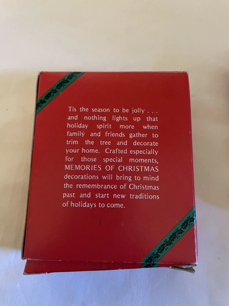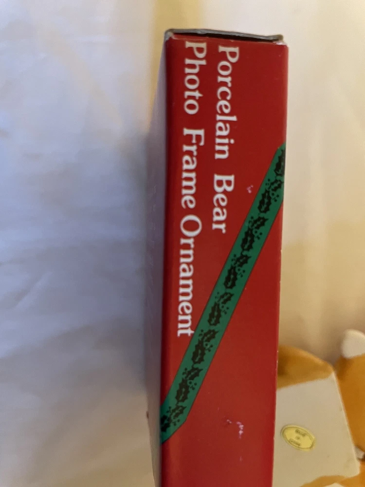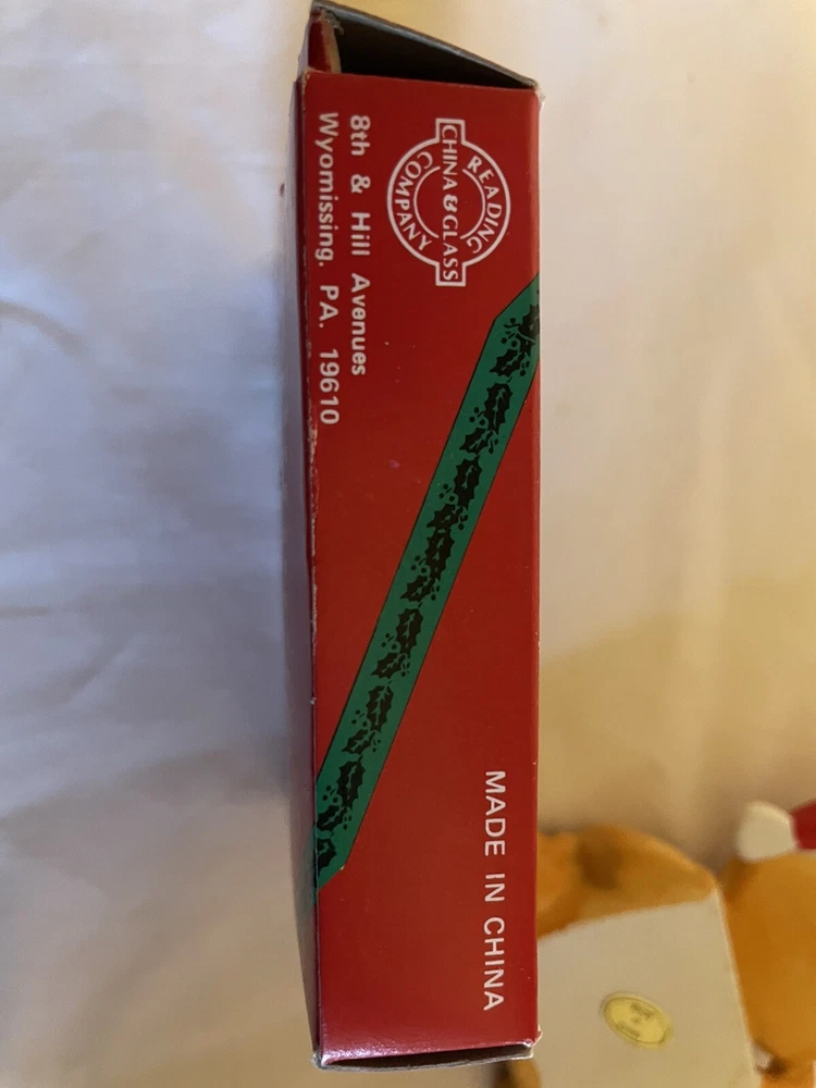 It is 3 3/8 - 3 1/2 inches tall, 2 7/8 inches wide at the widest point and about 3/4 inch thick. It is ceramic. Comes with original box. Please see pictures for condition and details. Thank you so much for looking!
