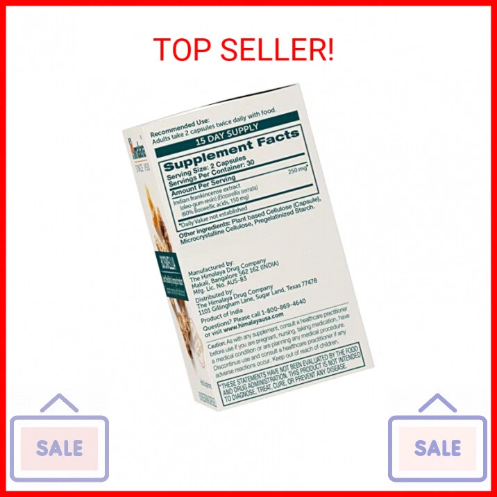 Himalaya Boswellia, Joint Support for Mobility and Flexibility, Promotes Tissue Preservation, 250 mg, 60 Capsules - FOR FLEXIBILITY AND RANGE OF MOTION: Himalaya Boswellia supports normal joint fluid production and supports your body during periods of exercise-induced inflammation. - PLANT-BASED QUALITY: Himalaya Boswellia does not contain ingredients of animal origin. It is magnesium stearate free, gluten free, wheat free, corn free, soy free and dairy free, and comes in a 100% vegetarian capsule. - CLINICAL STRENGTH POTENCY THAT MEETS YOUR NEEDS: Our Boswellia capsules are made with 250 mg of extracts to give you a highly efficacious Boswellia concentration in just two capsules twice a day. - STANDARDIZED BOSWELLIA EXTRACT: Himalaya Boswellia is made from Boswellia (Indian Frankincense) oleo-gum-resin extract instead of just the simple crushed Boswellia you may find on its own in other supplements. - QUALITY & SAFETY: Produced in a cGMP Good Manufacturing Practices certified facility, Himalaya Boswellia is rigorously tested for identity, strength and safety, through the use of well recognized techniques and highly sophisticated instruments Payments We accept the following payment methods PayPal Support Our dedicated customer support team is here to assist you from 9AM to 5PM Monday through Friday, excluding public holidays. Should you reach out to us and not recieve an immediate response, it's likely due to a higher-than-usual volume of inquires. We want to reassure you that your concerns are important to us, and we're working dilligently to get back to you. Expect a response by the next business day at the latest. Your understanding and patience are greatly valued as we strive to provide you with the best support possible! Shipping All orders are processed within 5 business days. Shipping estimates may be shown on this listing by eBay, and these are often not an accurate reflection of our shipping times. If we are experiencing a high volume of orders, shipments may be delayed by a few days. Please allow additional days in transit for delivery. If there will be a significant delay in shipment of your order, we will contact you via message. Shipping rates & delivery estimates Shipping is often free, but if charges for your order apply they will be calculated and displayed at checkout.