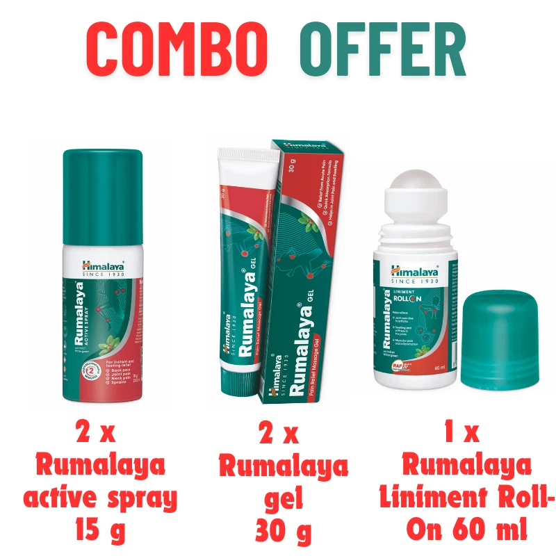 Himalaya Rumalaya Combo Pack – A Complete Pain Relief Solution Get fast and effective relief from muscle and joint pain with this exclusive Himalaya Rumalaya Combo Pack . This specially curated combo includes: 2 tubes of Himalaya Rumalaya Gel (30 gm each) – A powerful anti-inflammatory gel that penetrates deep into muscles and joints, offering fast relief from pain, stiffness, and swelling. 2 bottles of Himalaya Rumalaya Spray (15 g each) – A convenient, easy-to-use spray that targets pain in hard-to-reach areas. Perfect for quick application and rapid pain relief. 1 bottle of Himalaya Rumalaya Liniment Roll-on (60 ml) – A hassle-free roll-on liniment that delivers lasting relief from joint pain, backaches, and muscle discomfort, without leaving a greasy residue. This complete Rumalaya pain management kit is formulated using natural ingredients like Boswellia and Guggulu, which are known for their anti-inflammatory and healing properties. It’s an ideal solution for those suffering from arthritis, sports injuries, sprains, and muscular pain. Why Choose This Himalaya Rumalaya Combo Pack? Natural Ingredients : 100% herbal formula with no harmful chemicals Multi-Purpose : Suitable for joint, muscle, and back pain relief Portable : Convenient sizes for home and travel use Fast-Acting : Quick absorption for immediate relief This powerful pain-relief combo is trusted by millions worldwide for its effectiveness and natural formulation. Stock up on this combo and say goodbye to pain today! Order Now and experience the power of Himalaya’s trusted pain relief products! ........................................................................................................................................................................................ CONTACT US If you have any inquiries, feedback, or product requests, please feel free to reach out to us via eBay messages at your convenience. We are committed to ensuring your complete satisfaction with your purchase and are here to assist you. SHIPPING: Orders placed before 2 PM Indian Standard Time (IST) on business days (Monday to Friday) will typically be dispatched on the same day. Orders received after this time, or on weekends and public holidays, will be processed and dispatched on the next business day. Please note that dispatch times may vary during peak periods or due to unforeseen circumstances. RETURNS: Returns must be initiated within 30 days of the purchase date. Items should be returned in their original packaging, unopened, and in the same condition as when received. Please note that return postage costs are the responsibility of the buyer. FEEDBACK: Your satisfaction is our top priority, and we love to hear about your experience. Please take a moment to share your thoughts with us. Your feedback helps us improve our products and services, ensuring we continue to meet your expectations. Looking forward to hear from you!!?