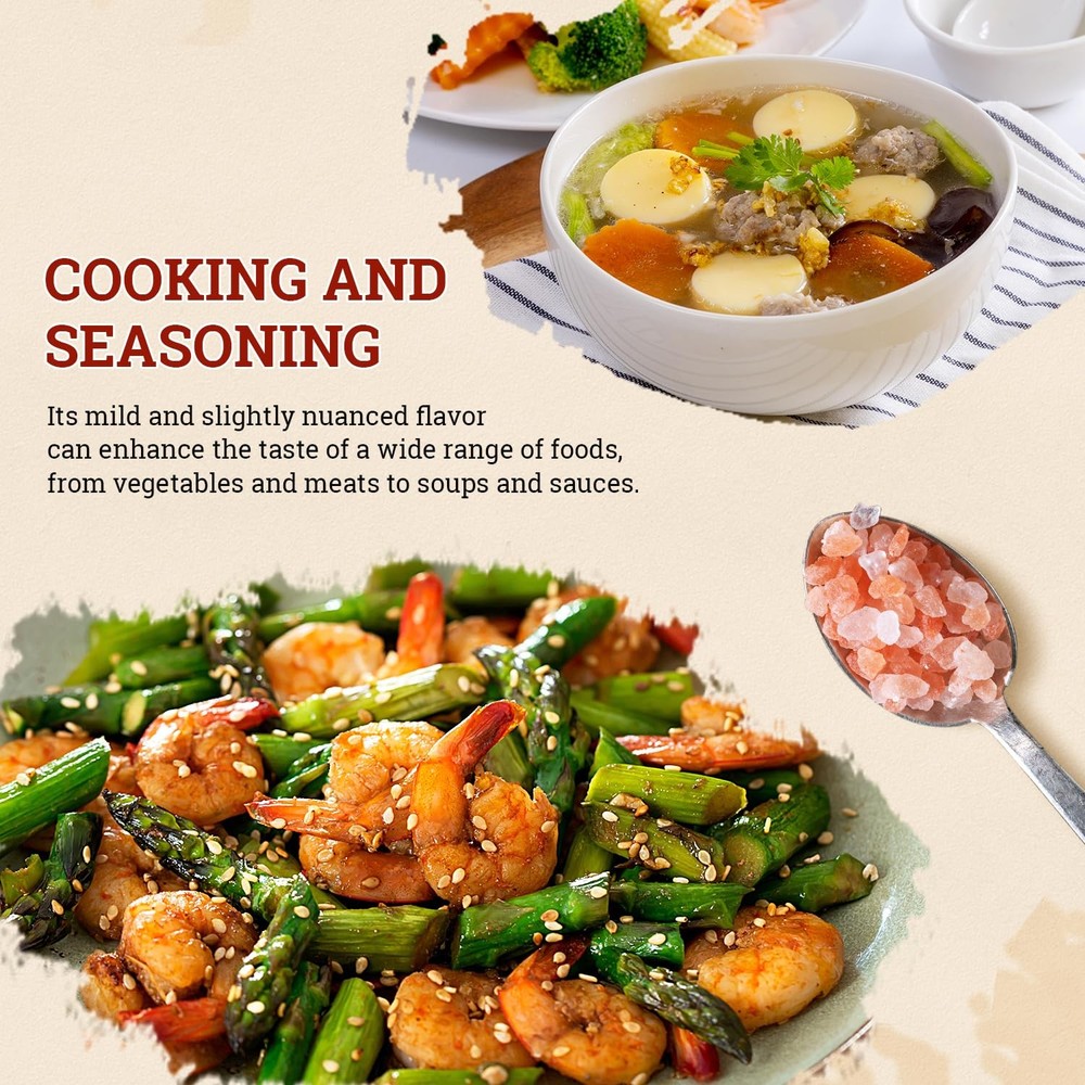 【100% CUSTOMER SATISFACTION】: Embrace Nature's Richness: With every sprinkle, savor the richness of nature and elevate your meals to new heights with our Himalayan Pink Salt. 52USA takes your satisfaction as our highest priority. Let us know anytime for questions and concerns, as we value your voice to make things right. 【THE ULTIMATE KITCHEN STAPLE】- A must-have kitchen staple for culinary enthusiasts. Mined from the heart of the Himalayan Mountains, this 100% natural 52USA Himalayan Pink Salt Coarse is free from any contaminants, ensuring a pure and unrefined flavor. Pink himalayan sea salt is free from all additives, dyes and preservatives, and without any processing. Perfect for seasoning meats, vegetables, and even baked goods, it adds a rich, mineral-infused taste to every dish. 【Premium Quality】: Sourced with care, 52USA pink salt for grinder meets the highest quality standards and is certified organic, ensuring a superior product for your culinary endeavors. Pristine Flavor: Treasured for its clean, upfront taste and striking hue, our all-natural Himalayan Pink Salt is a staple in kitchens worldwide. 【HEALTH AND WELLNESS IN EVERY GRAIN】 - Unlike ordinary table salt, It's not just a seasoning; it's a gateway to better health. Ideal for those on Keto and Paleo diets, this Pink Himalayan Sea Salt supports a holistic approach to wellness, aiding in detoxification, reducing muscle cramps, and promoting hydration. 【NATURAL BEAUTY AND RELAXATION】 - Beyond its culinary uses, this versatile pink himalayan salt works wonders for your skin and mind. Use it as a bath salt to soothe sore muscles, exfoliate dead skin cells, and relax after a long day. Its natural minerals help to cleanse and detoxify your body, leaving your skin soft, smooth, and rejuvenated. Experience natural beauty and relaxation, all from the comfort of your home. 【ETHICAL AND SUSTAINABLE CHOICE】 - With 52USA Himalayan Pink Salt Coarse 1lb, you're choosing more than just salt. You're supporting sustainable mining practices and ethical sourcing from the pristine Himalayan Mountains. Hand-mined with respect for the environment, our salt is not only pure and high-quality but also contributes to the livelihoods of local communities. By choosing 52USA, you're part of a movement towards a more ethical and sustainable future. Product description