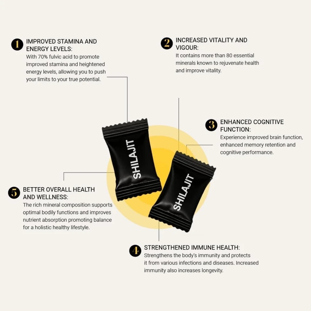 Organic Pure Himalayan Shilajit Gummies Gold, with Ksm 66 Ashwagandha, Gokshura 100% Natural | No Added Sugar Non-GMO | Fulvic Acid & 85+ Trace Minerals for Men, Women | 60 Gummies [SOURCED FROM THE HIMALAYAS] Harvested from the untouched Himalayan peaks at 18,000 ft, these gummies contain premium, gold-grade Shilajit resin. Developed using data-backed formulation, this high-purity supplement is your daily dose of trusted, powerful energy. 🧪 [LAB TESTED & QUALITY ASSURED] Each batch is lab-tested for heavy metals, fillers, and additives to ensure safety and purity. Made without added sugar, corn starch, glucose syrup, artificial colors, or gums, these gummies are 100% vegan, natural, and non-GMO. ❌【No Sugar, Clean Ingredients】 Formulated without added sugar, artificial colors, or preservatives. These vegan-friendly gummies are non-GMO, gluten-free, and made for clean daily supplementation. ⚡ [NATURE’S ENERGY BOOST] Packed with fulvic acid, humic compounds, and over 85+ trace minerals, these gummies naturally support energy, endurance, and overall vitality. No chemicals, no contaminants — just clean, plant-based performance support. 🧳Portable & Travel-Friendly: Each gummy comes individually wrapped, with 60 gummies in every pack—ideal for active routines, travel, and everyday wellness. Whether you're at the office, hitting the gym, or out and about, these convenient gummies offer a clean, hassle-free way to stay on track with your daily supplement needs—anytime, anywhere. 👫【For Men & Women】 Formulated to boost strength and endurance for all genders, promoting mental clarity, sustained energy, and balanced wellness in daily life Dosage: Take 2 gummies daily.