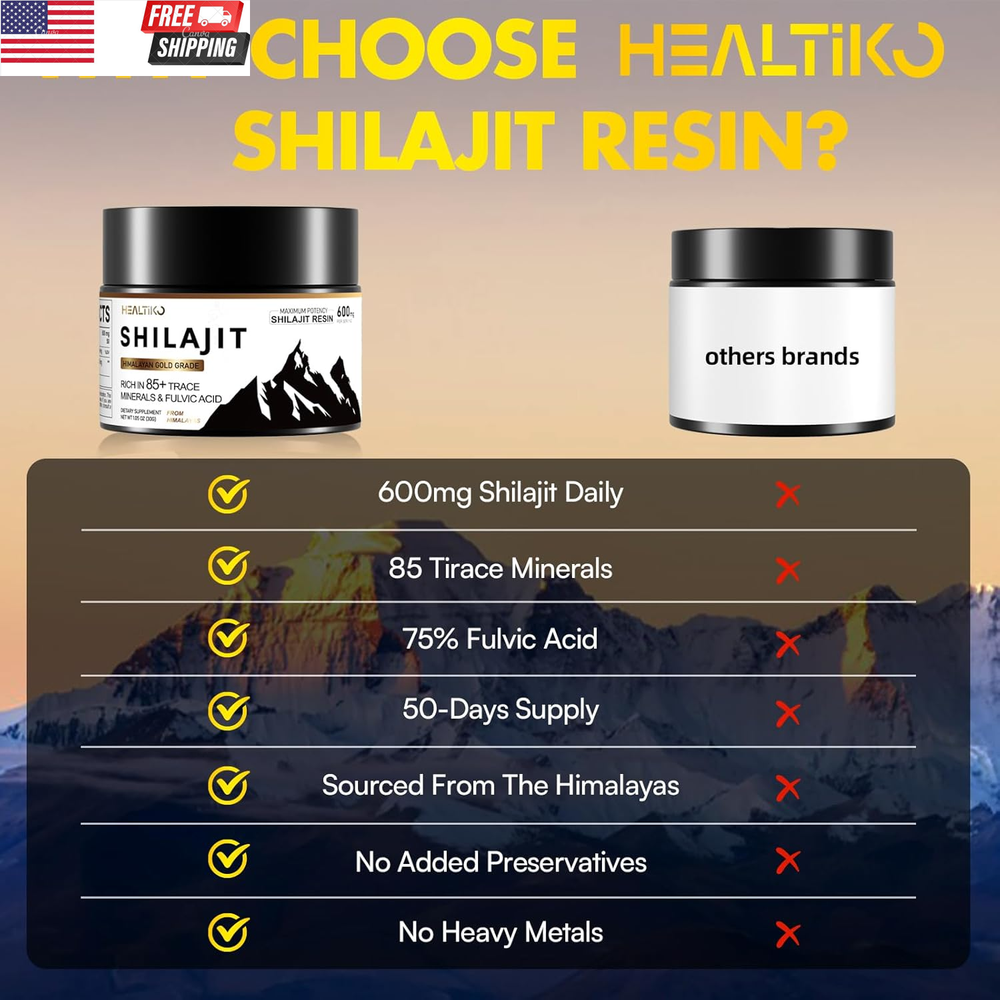 Shilajit Resin, Himalayan Shilajit Pure Himalayan Organic - 600Mg Potency Gold Grade, Shilajit for Men & Women with 85+ Trace Minerals & Fulvic Acid, for Stamina, Immunity, Strength, 100 Serving Enjoy The Power Of The Shilajit: Have you been feeling drained easily in daily life? Get ready to experience a new wave of Stamina and Stamina with Himalayan of shilajit resin. It's not just about pumping your body with minerals, it's about ensuring your body can fully utilize shilajit to your immunity, Stamina levels, productivity, and no more fatigue. Use the natural of shilajit resin you'll feel more comfortable, confident, and ready to tackle life's challenges Pure Himalayan Shilajit Resin: Shilajit is a gift from nature, a golden-grade treasure in the time-honored traditions of Ayurvedic wisdom. Including the essential 85+ trace minerals and high potency of fulvic & humic acid, our shilajit pure himalayan organic resin is rich in fulvic acid, a natural compound that enhances your body's ability to absorb vital nutrients. It's an ideal addition to your daily health routine for improved nutrient uptake Complete Wellness Enhancement: Combat fatigue and experience a surge of strength and overall well-being with Healtiko shilajit organic. Our golden-level shilajit, enriched with fulvic acid, surpasses conventional mineral supplements. And enhance mineral absorption to your immune, Focus, Strength, Endurance, and fortifying your immune system. Shilajit for men and shilajit for women an authentic addition to your daily health routine Easy To Use, Maximum Potency: Our authentic of shilajit resin includes measuring spoons to ensure each precise and perfect serving dose. It is also easily used, just simply dissolve pure resin form of shilajit in lukewarm water or your favorite beverages to experience the full benefits of organic shilajit for your overall wellness benefit. Packaged in a security-sealed dark bottle, which offers maximum protection away from light effects, and prolongs the potency of your shilajit resin You Can Count On: We take pride in offering you only the highest-quality natural organic shilajit resin available on the market. Our shilajit pure himalayan organic is presented in its pure, minimally processed form, free from heavy metals, fillers, additives, and suitable for vegans. Our goal is to make sure that you're happy and have the best experience possible with us Product Description Unit Count 2.1 Ounce Primary Supplement Type Purified Shilajit Resin Number of Items 2 Product Benefits Stamina Boost*、Strength Increase*、Endurance Build*、Focus Improve*、Rejuvenation* Flavor Unflavored Item Form Gel Package Dimensions 2.24 x 2.24 x 2.05 inches; 4.16 ounces Size 1.05 Ounce (Pack of 2) Shipping Fast shipping is very important for us. Our standard US shipping service is FREE. Your order will be shipped within 2-3 business days upon full payment received. Your order will be delivered within 2-3 business days after the handling time. We only ship to the confirmed PayPal address. We reserve the right to cancel any order for any reason at any time. We are not responsible for undeliverable addresses. Returns and payment We offer a 30 days return policy from checkout winning date. We allow only PayPal as payment method FeedBack Your feedback very important to us, after you get your package and you are satisfied with our service please leave us positive feedback If you have any problem with your order / any questions please before leave any type of feedback For any questions, using eBay contact system Please visit our eBay store to check out other items for sale! Thank you for shopping at our store.