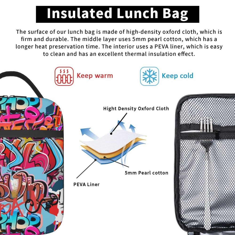 Vintage 80s 90s Pattern Insulated Kids Lunch Box for Boys Girls Reusable