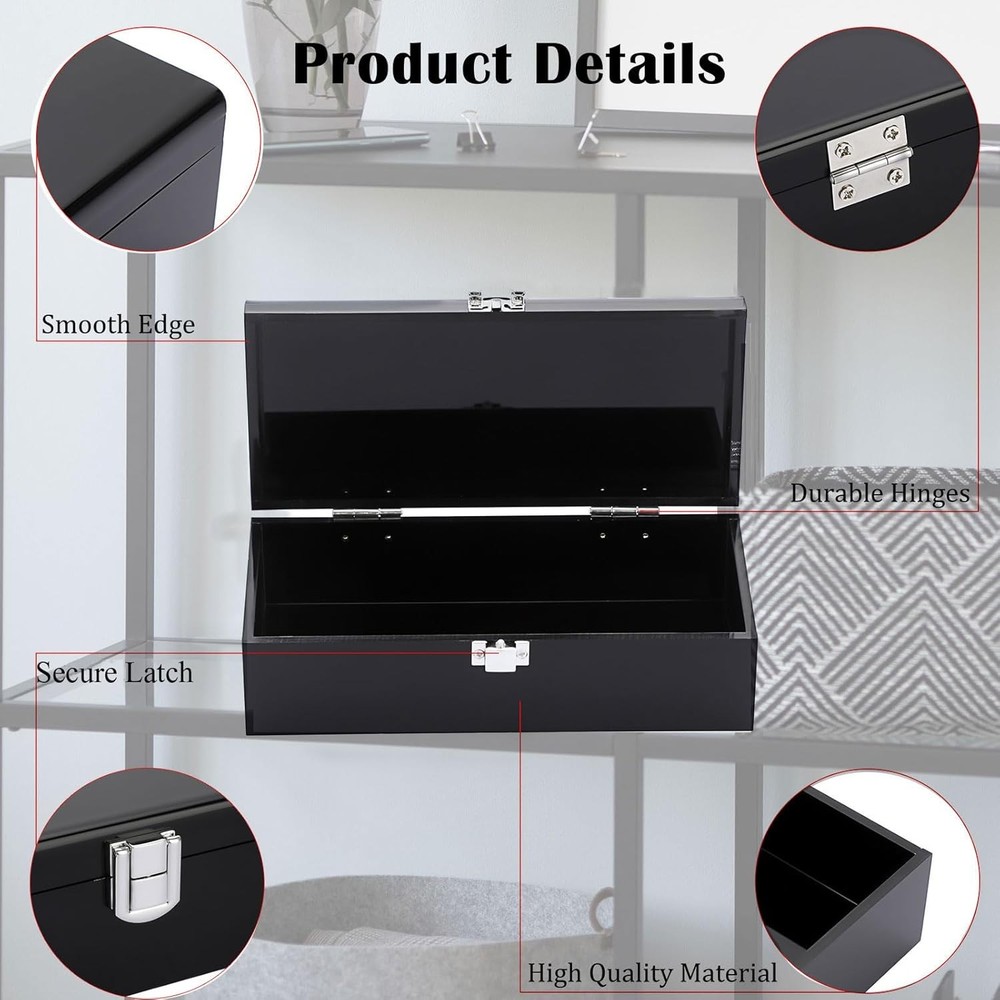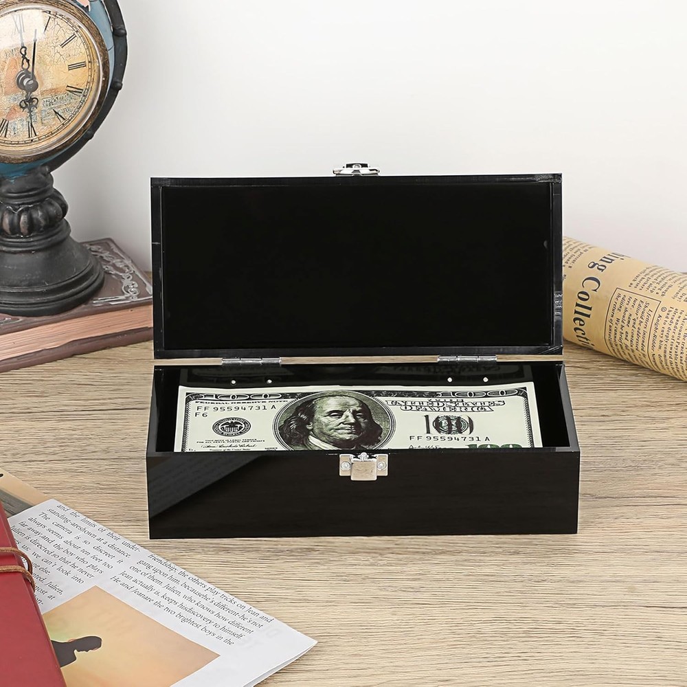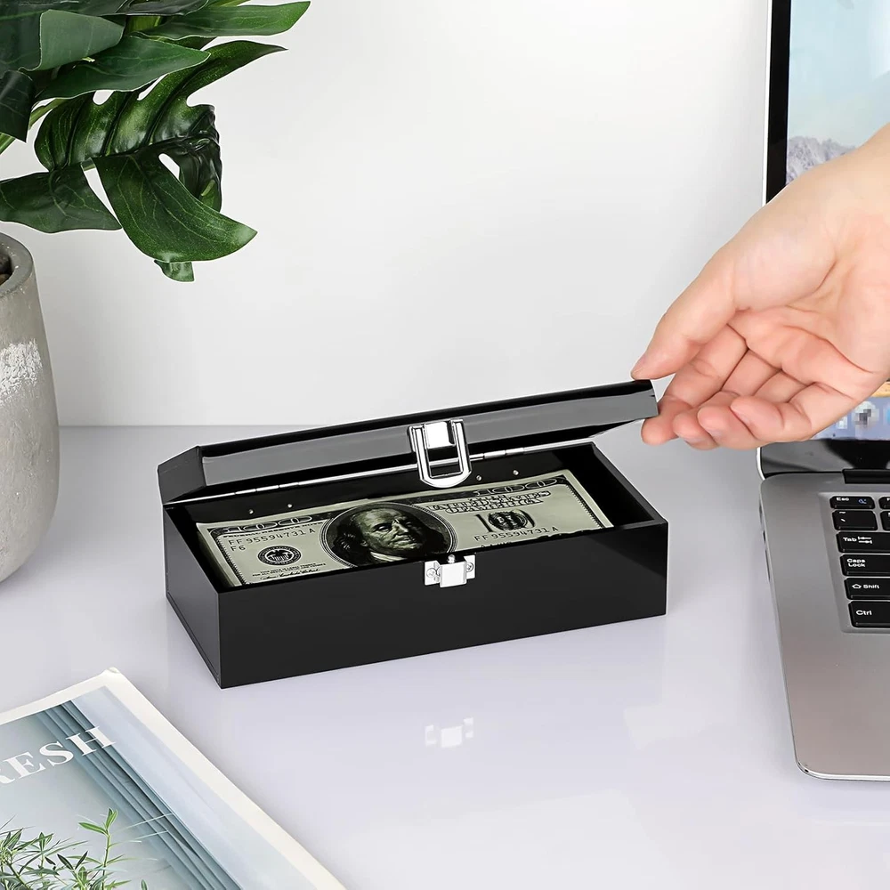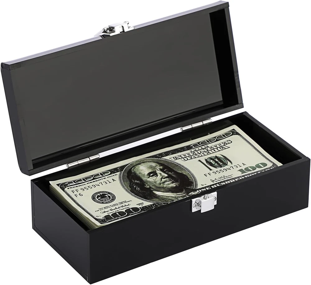 Hipiwe Cash Box Money Holder Black Organizer Storage Small, Product Details Brand: Hipiwe Product Dimensions: 3.1"D x 7"W x 2.2"H Lock Type: No Key Color: Black Material: Acrylic Special Feature: Portable Mounting Type: Freestanding Water Resistance Level: Waterproof Chamber Depth: 2.2 Inches Manufacturer: Hipiwe Part Number: HPWSN00861 Item Weight: 9.6 ounces Country of Origin: China Item model number: USSN202306YED Size: Small Style: Modern Item Package Quantity: 1 Special Features: Portable Batteries Included?: No Batteries Required?: No Brand: Hipiwe Product Dimensions: 3.1"D x 7"W x 2.2"H Lock Type: No Key Color: Black Material: Acrylic Special Feature: Portable Mounting Type: Freestanding Water Resistance Level: Waterproof Chamber Depth: 2.2 Inches Acrylic Cash Holder --Size(LxWxH): 7" x 3.1" x 2.2". The acrylic cash box is able to accommodate cash or coins without taking up too much space. It can be placed in drawers, or placed on the desktop for easy sort. Ideal for personal households or commercial places High Quality Material -- Made of premium acrylic, sleek black surface, sturdy and suitable for currency storage, keeping it clean and tidy. No harm to banknotes or currency, dust-proof, waterproof and reliable Elegant Design -- Black surface with silvery buckle design storage case, creates a elegant and high-end appearance, which also can match various decorative styles, making it a beautiful scenery on the desktop or display cabinet Multiple Uses -- This acrylic cash box is perfect for saving and collecting paper money, banknotes, currency, bills. Also can hold tickets, invoices, cards, coins, jewelry, keys and other collectibles makes it a practical multi-functional storage tool Exquisite Gift -- A practical and wonderful gift for your friends or family, Ideal for birthday, Christmas, Valentine's Day, Mother's Day, Anniversary Day and more