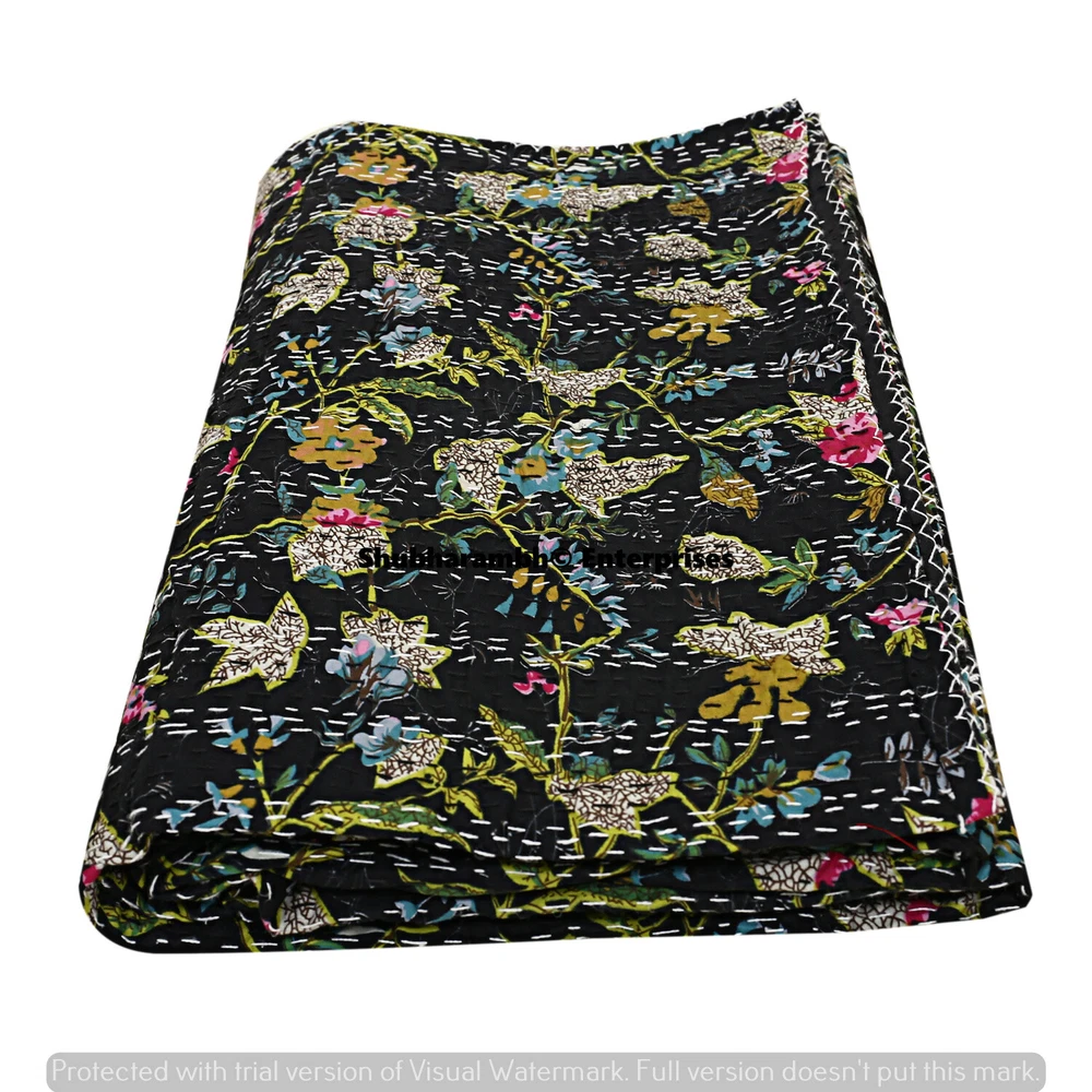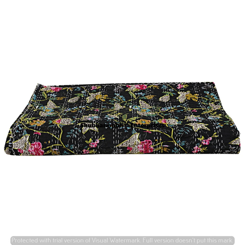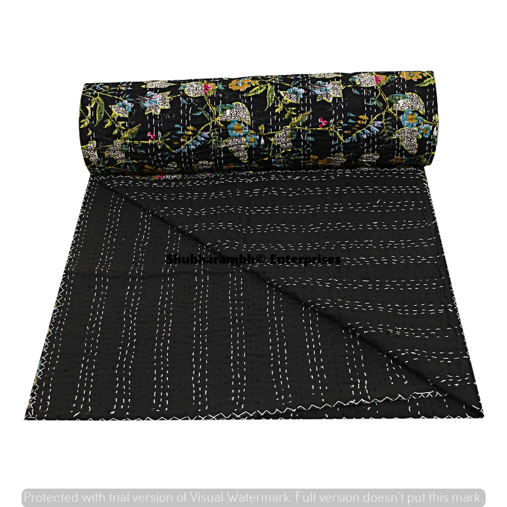 Style: Kantha Size: Queen Type: Quilt Weight: 1.450 KG Care Instructions: Machine Washable Model: SPK 021 Thread Count: 1000 or More Product Type: Bedspread,Throw Blanket,Quilts, Gudri, Coverlets Department: Adults, Kids, Teens Insulation: All Seasons Product Line: Hand Print Character: ..... MPN: Does Not Apply Pattern: Floral Brand: Handmade Character Family: ..... Item Length: 90'' Inches { 224 Cm } Country/Region of Manufacture: India gtin13: Does not apply Size in Inches: 90" X 108" Inches ( 224 X 274 CM) Theme: Asian Fill Material: 100% Cotton Drop Length: ..... Shape: Rectangular Item Width: 108'' Inches { 274 Cm } Material: Cotton Features: Decorative, Reversible, Quilted Custom Bundle: No Personalized: No Color: Black UPC: Does not apply GSM (Grams per Square Meter): ..... Closure Type: No Closure