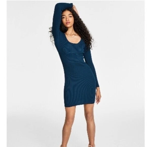 Hippie Rose balances feminine flair and cozy comfort with this juniors' body con sweater dress. Accessorize with stylish jewelry and fashionable scarves to showcase your own unique style. Approx. model height is 5'10" and she is wearing a size medium Bodycon: fitted through the chest, waist, and hips; sweater dress: heavier knit dress for warmth and comfort Scoop neckline Pullover styling Rayon/polyester Machine washable Imported Web ID: 1319793