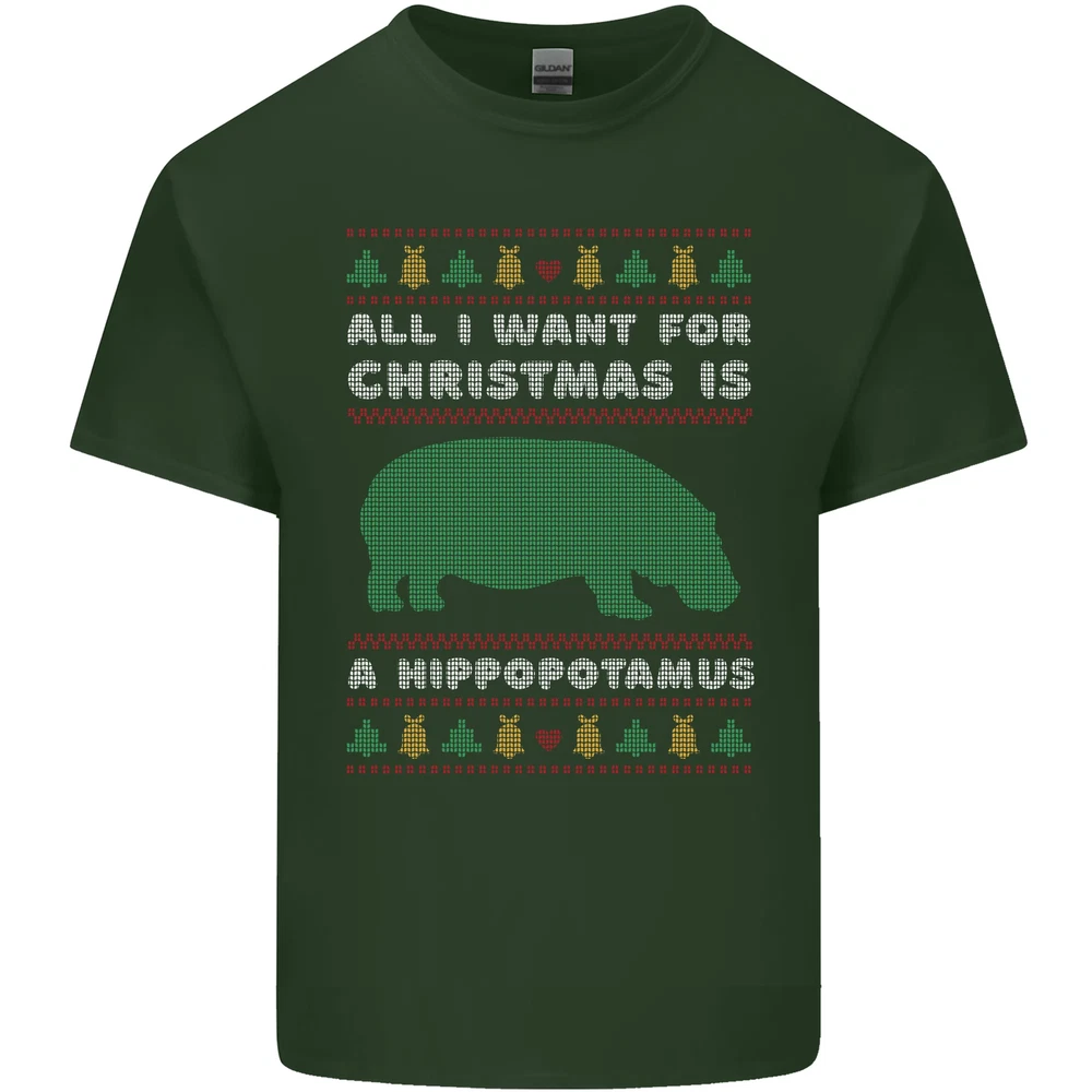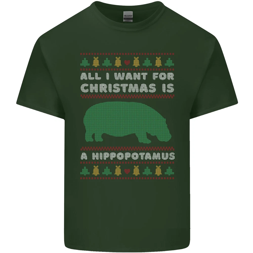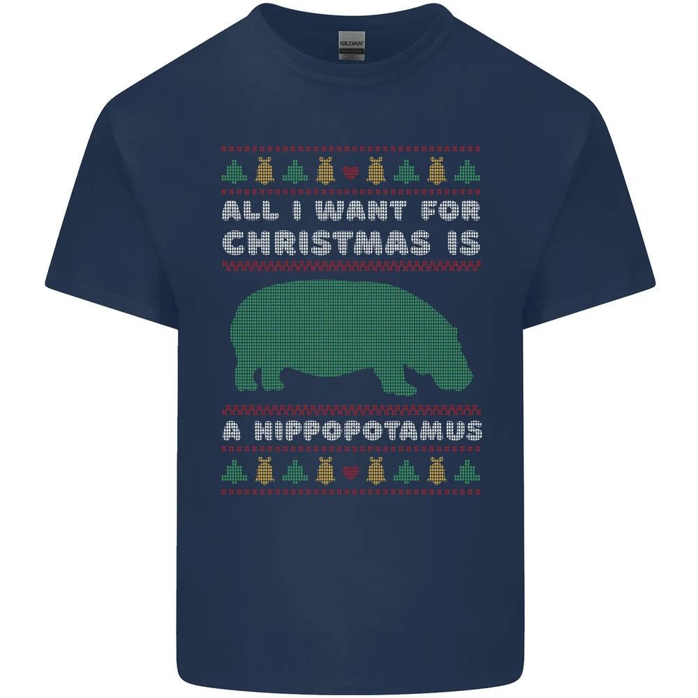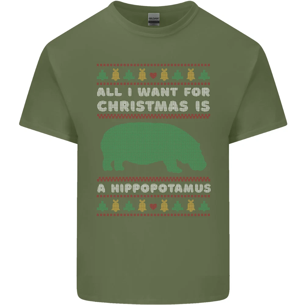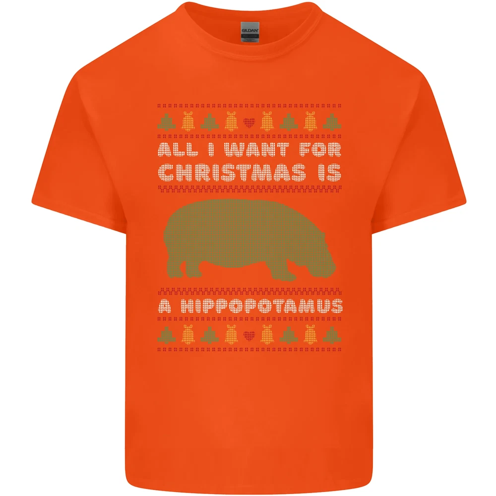 Hippopotamus Hippo Christmas Funny Mens Cotton T-Shirt Tee Top