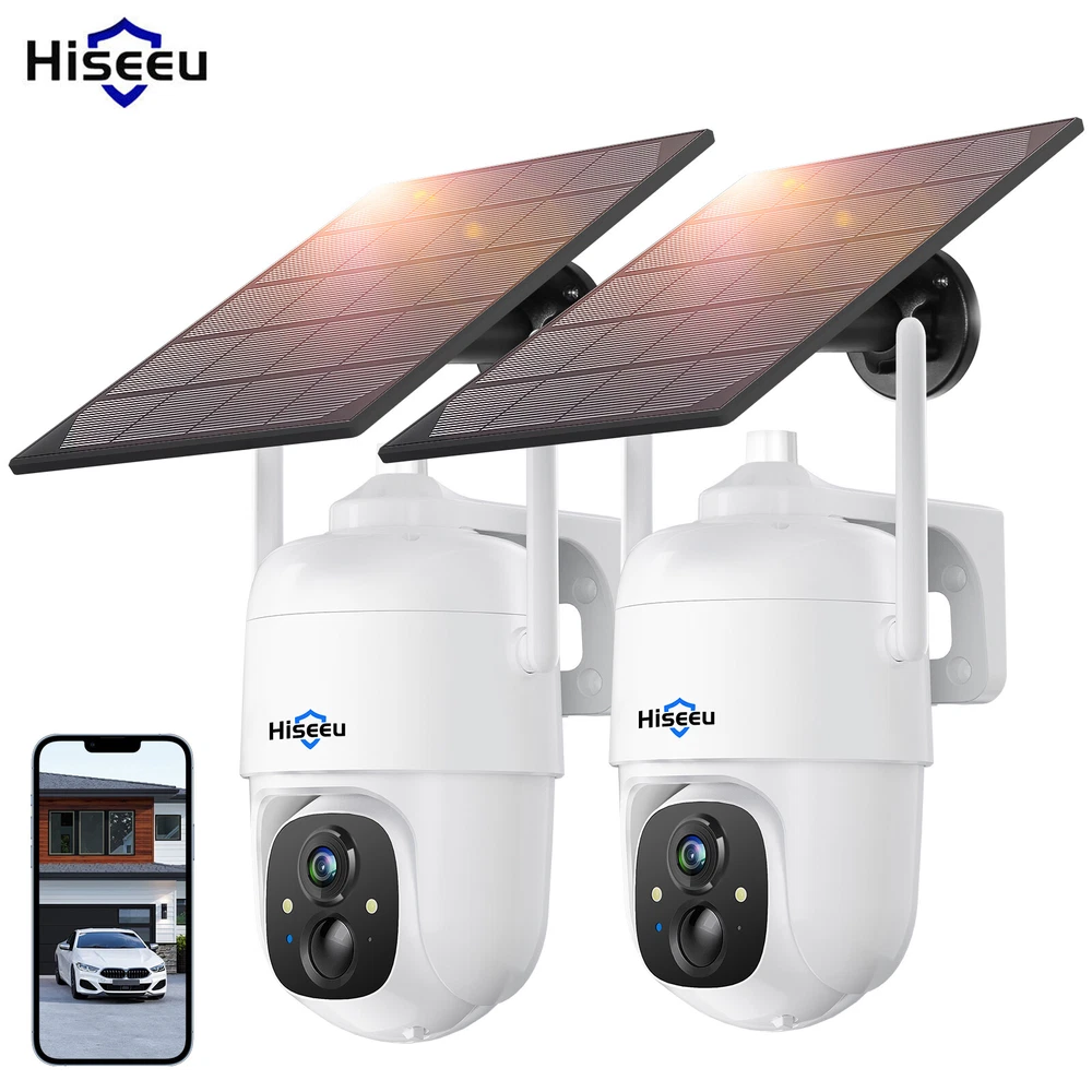 >>>Solar Powerd and Full 355° Coverage: The solar security camera has a built-in 9000mah rechargeable battery and is fully charged through the solar panel or USB cable, to achieve a 100% wireless and uninterrupted power supply. Never need to disassemble the camera to charge, At the same time, the APP can control the horizontal 355° and vertical 90° rotation angles, and easily cover the 355° field of view. It can bring you 365 days of uninterrupted protection, and ensure your home's safety. >>>2K 3MP and ColorNight Vision: The wireless outdoor camera uses the most advanced 1/3CMOS color sensor and advanced 2K 3MP optical lens. Provides detailed and clear graphics and video even in low light conditions, while the upgraded high-power white light and built-in infrared LED array can help y Hiseeu Solar Battery Powered Wireless Security Camera System Outdoor Wifi Audio Item Features : >>> Solar Powerd and Full 355° Coverage : The solar security camera has a built-in 9000mah rechargeable battery and is fully charged through the solar panel or USB cable, to achieve a 100% wireless and uninterrupted power supply. Never need to disassemble the camera to charge, At the same time, the APP can control the horizontal 355° and vertical 90° rotation angles, and easily cover the 355° field of view. It can bring you 365 days of uninterrupted protection, and ensure your home's safety. >>> 2K 3MP and ColorNight Vision : The wireless outdoor camera uses the most advanced 1/3CMOS color sensor and advanced 2K 3MP optical lens. Provides detailed and clear graphics and video even in low light conditions, while the upgraded high-power white light and built-in infrared LED array can help you capture colorful pictures and videos at night with a night vision range of 7-10 Meters, and can capture more things in the dark, can see any corner you want to monitor, let you sleep peacefully. >>> IP 65 Waterproof and Enhanced WiFi Antenna : The wireless outdoor security WiFi camera is made of enhanced IP65 material, which can be used safely regardless of rain, sunlight, high temperature, and severe cold. At the same time, it is equipped with a high-gain 4dbi WiFi antenna and 2.4G WiFI transmission, which can receive your data in a wider range. The network signal has good wall penetration, and strong anti-interference ability, and realizes the security protection for the whole year. >>> PIR Sensing and Two-Way Talk : The solar security camera chooses a more complete PIR sensing technology, intelligently distinguishes people, cars, pets, passing, staying, leaving, etc., pushes them to the APP''Vicohome''in real-time, and can draw customized monitoring areas at the same time, through the built-in microphone and speaker, Remote warnings can be used in emergency situations to prevent losses. Also, chat with family and friends in real time. Let you know the dynamic anytime, anywhere. >>> Smart Sharing and Privacy Protection :Solar Outdoor Security Camera supports multi-user connectivity and device sharing with 8-128GB micro SD card (not included) and free 3-day trial cloud storage, Out and about or busy at work, you may ignore the notification, but family members can scan your code to access the camera and protect your home together, while we focus on customer security and privacy protection, all images are encrypted, and no one can access the information without your consent. Applied to Multiple Occasions it can work without any cables thanks to the rechargeable batteries and WiFi connection. Mount it anywhere to have an ultra wide viewing angle with its 355° pan and 90° tilt. Set it up in seconds and enjoys peace of mind. Advanced Cloud AI technology Analysis AI recognition and analysis algorithms intelligently distinguish humans, vehicles, pets with detailed analysis results of passing, staying or leaving, etc.Notifications are pushed to the app instantly, keeping you informed of what's happening wherever you are. PIR Human Detection Camera will send alarm information to user's phone via APP when someone invades the warning area. Vehicle Identification Through Cloud AI calculation, the camera can identify the vehicle and send an alert through the APP. Package Inspection Through Cloud AI calculation,when the camera detects the behavior of picking up and placing packages in the warning area, it will automatically send an alarm. Pet Identification Through the AI algorithm, the camera will recognize the pet and capture it, leaving the cute moment of the pet. Activity Zone Accurately draw customized activity zones in the mobile app.Irrelevant information outside the area would be filtered. The key area, the key focus. 2 months long standby time Record 20 10-second videos every day and the gimbal does not rotate. Solar Panel Charging Use with a dedicated solar panel to ensure that the camera is online for a long time. Dual Light Source with Color Night Vision Full Color Mode : Upgraded high power white-light source. It's able to take color pictures at night. Normal Mode: Built in with IR LED array. Night vision range is up to 20 m. Pan/Tilt 360° All-Round Protection It allows you to remotely control the left right up down rotation via the app.Offers a 90° vertical and 355° horizontal rotation range.Protect your home from 360°. Alternative Methods of Storage Cloud Storage Cloud Storage: Up to 60 days of cloud storage intelligent backup to prevent lost. 7-days free cloud recording recycling. (After the free trial period ends, the feature requires a paid trial.) Local Storage: Micro-SD card storage up to 128GB.(not include the sd card) Intelligent and flexible Notification push Set targeted category in the app, and the cloud Al system will only push notifications when the targets are detected. No more redundant pushes. Two-way audio for live communication With the built-in waterproof and dust-proof microphone and Hi-Fi speaker, you can warn remotely to stop the loss in case of an emergency. For family and friends, live ch
