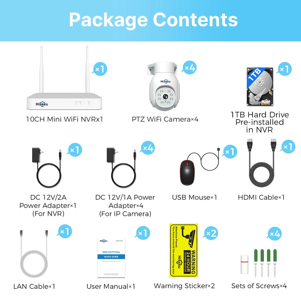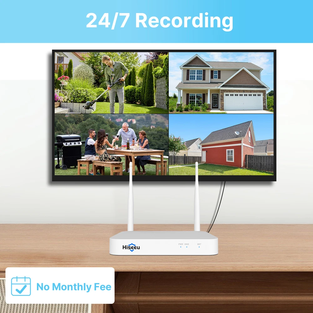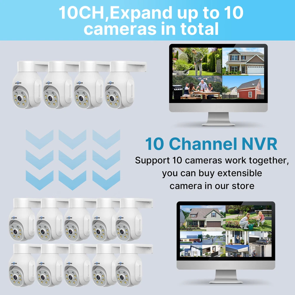 Note : This cctv system is wireless wifi cctv system ,the camera don't need network cable ,but it still need 12V/1A power supply cable connect to the socket. Note : This cctv system is wireless wifi cctv system ,the camera don't need network cable ,but it still need 12V/1A power supply cable connect to the socket. Plug and play, easy to install Cameras are paired to the NVR from factory setting, All you have to do is to get them powered and they would connect to each other autmatically. Very easy and convenient Expandable 10 Channel NVR With 10 channels NVR, It allows connect 10 cmaeras maximum, It means you can add more cameras at later. Motion Detection Alarm When anyone triggers, it will send you instant app push notifications , you will not miss any important moments . Real-time Two-way Audio With the built-in microphone and speaker of the wireless security camera, you can see, hear and talk to anyone who appears on the screen of your device. You can communicate with your elders, children, nanny and pets even if you are thousands of miles away. You can also verbally warn any uninvited people. IP66 Waterproof This rugged weatherproof camera is IP66-rated to ensure protection against all types of bad weather. Be it heavy wind, rain, or snow, we've engineered our cameras to withstand extreme temperatures. NVR&Camera Details