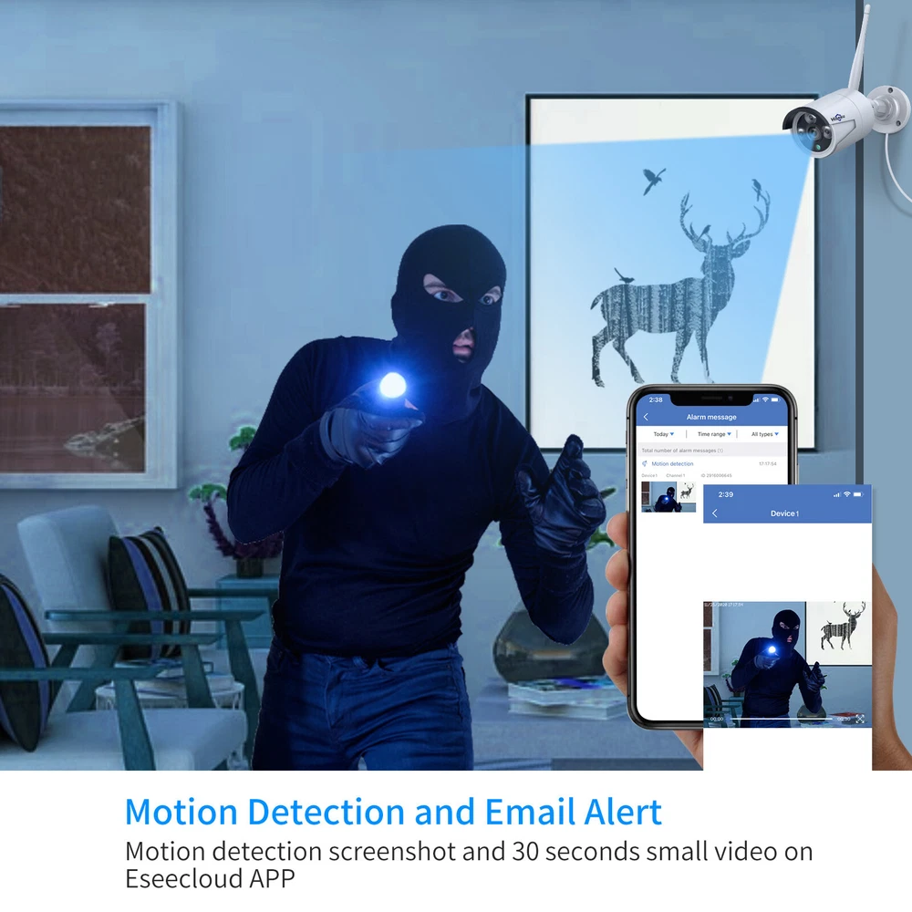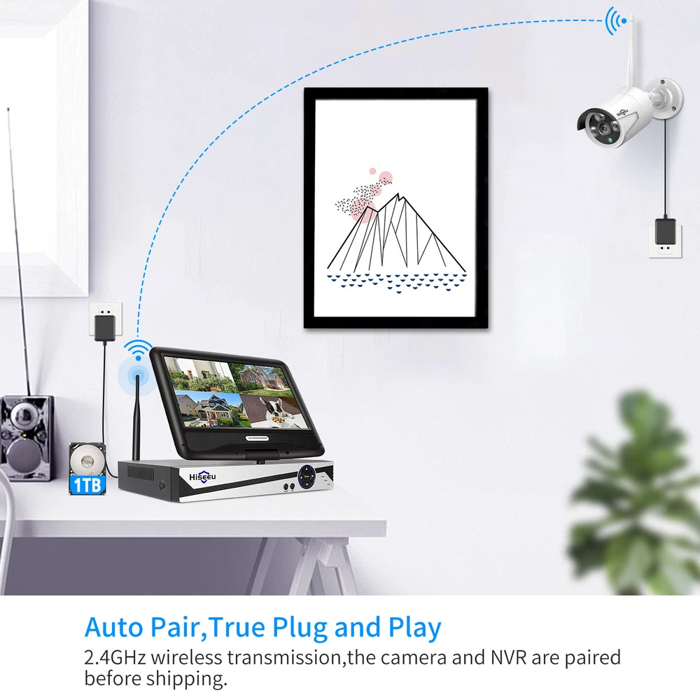 【DC12V Power Plug-in & Easy Setup】Wireless means camera and NVR is wireless connection,camera(No battery) and NVR still need work with power cable. The wireless video security system is easy to setup and DIY installation (need DC 12V plug power supply),these WIFI cameras are paired with NVR at manufacturing site.Connect PC/TV monitor to NVR by a VGA/HDMI cable.Finally power on and serve yourself with 24/7 surveillance,true plug and play. 【Stunning 2K Ultra HD video & One Way Audio】 3.0MP presents 2304*1296 Mega Pixels about 1.5 times clearer than 1080P. Camera with 3 array Infrared LED allows you to see up to 65ft night vision even in darkness. Employing IP66 Waterproof metal material housing, cameras can be used indoor and outdoor. Outdoor security camera system also allows you to see a Hiseeu WIFI Wireless Security Camera System Audio 10CH NVR 3MP CCTV Kit Lot Please note :this listing have many types cctv system ,pls select which you need one . About this item: [All-in-one 10 inch LCD Monitor, Easy Setup] The wireless security camera recorder equipped with 10 inch screen monitor(Not touch screen), 1296P full HD display clear image which view angle will be more widely. The cameras and NVR monitor are auto-paired during the factory setting. Just need to connect the wireless cameras and NVR with power supply provided for 24/ 7 surveillance purposes. Wireless means camera and NVR is wireless connection, camera and NVR still need work with power cable. [Expanable 8 channel cameras] This 8CH 1296P (2304*1296) 10 " LCD Monitor NVR wireless camera system up to work with 8pcs cameras, supported original kits’ one way audio camera, two-way audio camera,PTZ camera and battery camera.Meet all your needs. [Stunning 2K Ultra-HD video, one Way Audio] 3MP presents 2304*1296 Mega Pixels about 1.5 times clearer than 1080P. Camera with 3 array Infrared LED allows you to see up to 65ft night vision even in darkness. Employing IP66 Waterproof metal material housing, cameras can be used indoor and outdoor. Outdoor security camera system also allows you to see and listen to people on your property remotely. [1TB HDD Storage, Remote Playback] With pre-installed 1TB HDD, it can keep around 30+ days of 24/7 videos for 4 cameras simultaneously without overwriting. With FREE Eseecloud APP, for android and iPhone, all videos in the HDD can be playback remotely in your hand anywhere anytime. 8 channel NVR comes with advanced H.265+ compression ensures more stable and clearer viewing experience, saves 50% hard drive capacity. [AI Human Detection] Reduces false alarms -- Compared with the traditional motion detection alert, the Hiseeu 3MP camera adopt more advanced AI human detection technology in 2021. Advanced AI technology for home security camera systems distinguishes humans from animals or objects within the monitoring range reducing false alarms. When an intruder enters the monitoring range, the screen will display the human frame will be triggered. Notice: The wireless system doesn't mean you can use the system without any cables. Power supply still needed to power on the cameras and NVR. WIRELESS SURVEILLANCE NVR KIT NVR Features 8CH 2K wireless NVR recorder with 10 " LCD monitor and 1TB hard drive pre-installed Support Android/IOS/PC remote view, remotely check the system on phone or computer, please connect the NVR with router by Ethernet cable or wireless connection (doesn't support 5G wifi connection) Power dissipation: ≦ 5W Package 1 : 1 x 8Ch 1296P NVR with 10 " LCD monitor pre-installed 1TB surveillance hard drive 1 x 3.3ft power supply (12V-2A) for NVR 4 x 2K wireless securty cameras 4 x 10ft power supply (12V-1A) for cameras 4 x screw bag (for camera) / camera antenna 1 x user manual / USB Mouse / 3.3ft network cable 2 x surveillance warning notes Payment Delivery details Terms of sales About us Contact us Payment 1. All payments must be prepaid. 2. We only accept payment via Paypal. Please kindly check if you can pay via PayPal before placing order. Delivery details 1. packages will be sent out within the same day or 1 working days after the payment is received. 2. Orders place on the weekends will be shipped out on next Monday or Tuesday (holidays excluded). 3. Local pickup is not available. 4. We regret that we can not be responsible for any wrong or undeliverable addresses. 5. We'll pay for export custom tax,Buyer should pay for import custom tax if needed. Terms of sales 1. We automatically submit positive feedback to our buyers once the order is finished. 2. If you are satisfied with our product, please leave Positive Feedback , which means a lot to us, thanks in advance. 3. PleaseDo not leave Negative or Neutral Feedback before Contacting us, leave negative feedback can not solve any problem, but we will work with you to resolve those problems. 4. Please feel free to contact us viaEbay Message or E-mail.We generally reply messageswithin one business day, butexcept holidays. About us 1. We guarantee against any defective products. 2. We provide 30 days money back on non-defective, undamaged, unused and resalable products. Restocking fee and other fee may apply upon the condition of returned products. Shipping and handling fees are non-refundable. Product is not eligible for refund after the 14-day refund period is expired. 3. For any returned product, please contact us through ebay message firstly, we will work on resolving your particular case ASAP. Contact us If you have any question please feel free to contact us, we will respond within 1 business day or less, except holidays.