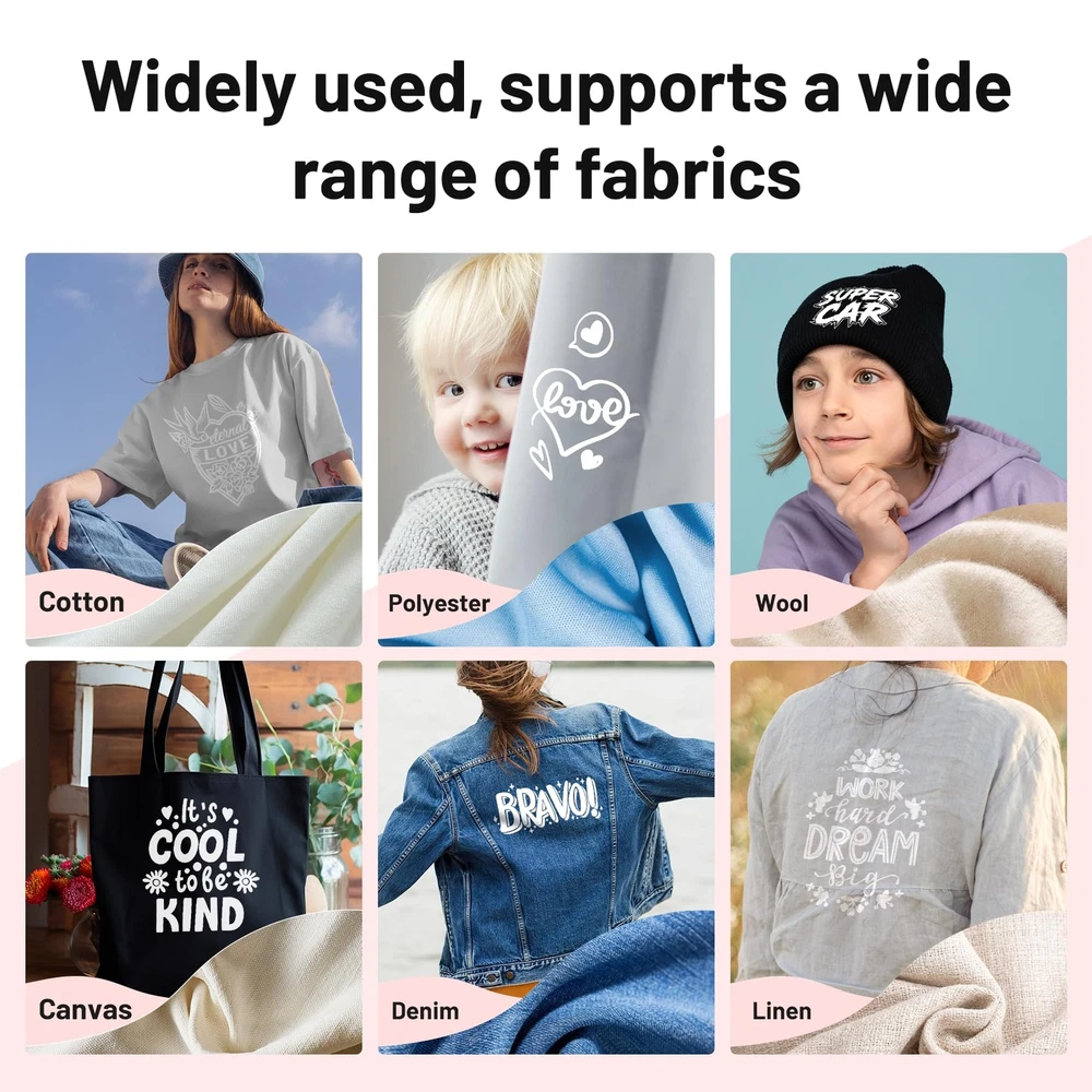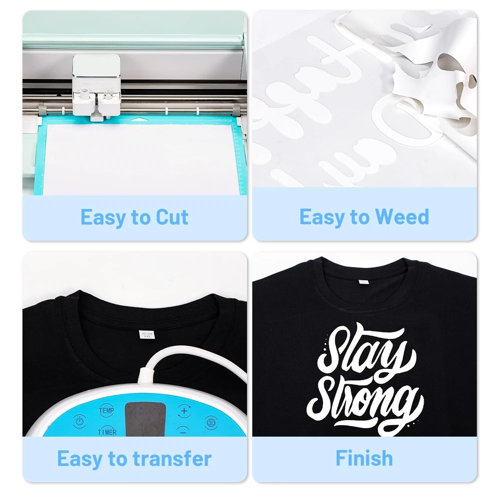 HTV Heat Transfer Vinyl: As a DIY enthusiast, Hisiu has always been committed to making sure that all DIY enthusiasts and artists are able to focus more on the design itself, rather than the technical difficulties of the DIY process Vinyl Support All Cutter Machine: (A test cut is always recommended) Hisiu heat transfer vinyl, not permanent vinyl. Our heat press vinyl is compatible with all cutting machines and fits 12 and 24 cutting mats Widely Used HTV Vinyl: Hisiu iron on vinyl is suitable for cotton, polyester, wool,canvas, denim, linen and other fabrics. It can be used for customized t-shirts, dresses, sweatshirts, jackets, pillows, backpacks, yoga pants, baseball caps and more. Safe material, skin-friendly texture, for both adults and children Machine Washable, Super Adhesive, Durable: Hisiu sport flex iron on vinyl has been tested more than fifty machine washes, keeping each wash at about forty minutes, and will not fade, tear or crease after washing Easy to Cut & Weed & Transfer: Hisiu HTV heat press vinyl is very sensitive to temperature and pressure and very easy to transfer. The material itself is soft, easy to weed, will not cause damage to the pattern due to adhesion, and perfectly reproduces your creative inspiration (It is better to press the required part so as not to be lifted when weeding)