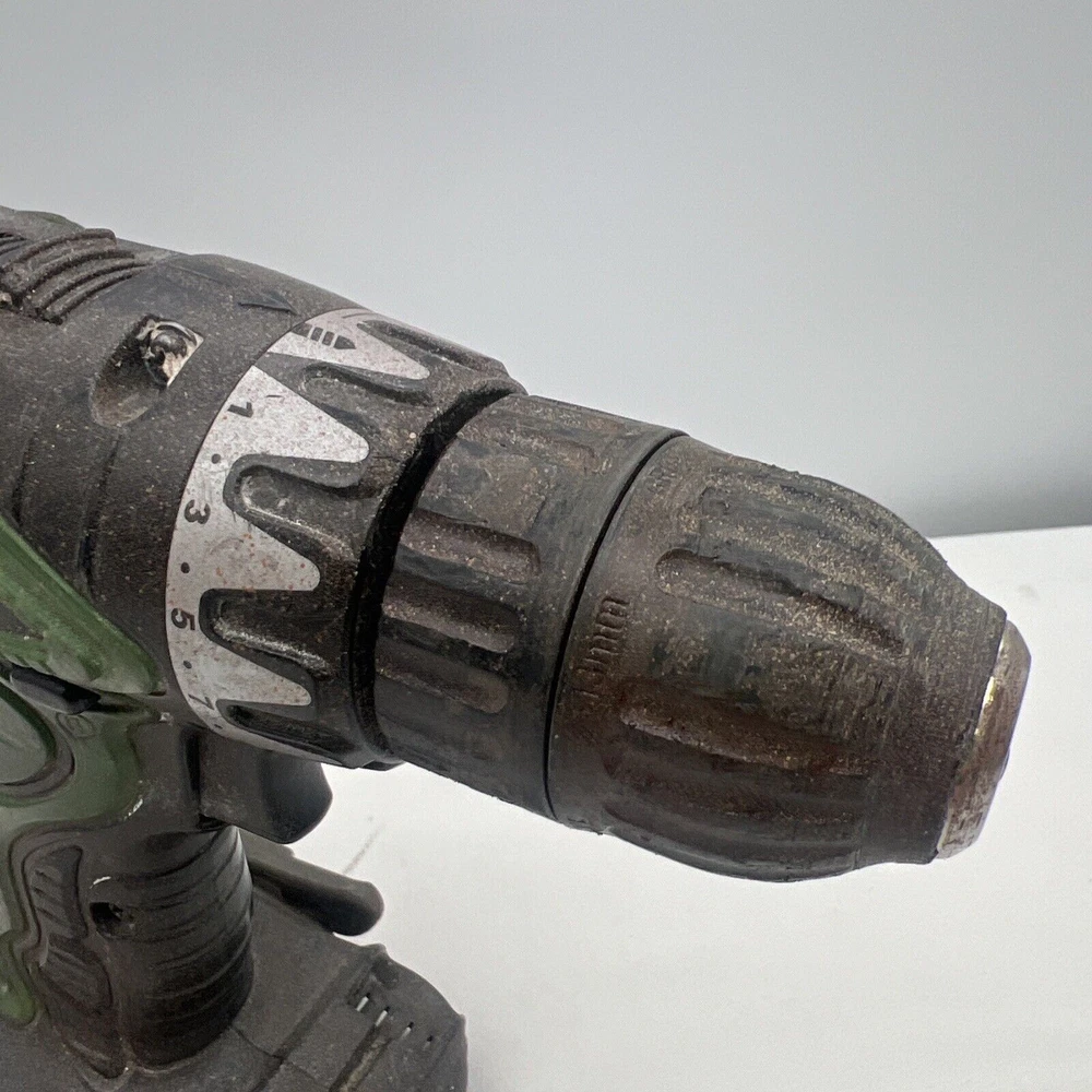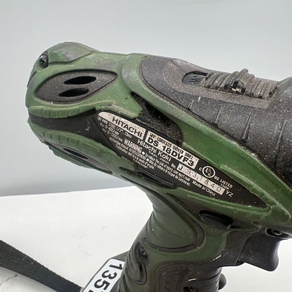 No Battery. This Hitachi DS18DVF3 cordless drill is the perfect addition to any DIY enthusiast's toolkit. This drill can handle all your drilling needs without worrying about cords or outlets. The 1/2 inch keyless chuck size and green and black color scheme make this drill both stylish and functional.. With a speed of 1200 RPM and a voltage of 18 V, this drill is sure to get the job done quickly and efficiently. Whether you're a professional contractor or a weekend warrior, this Hitachi cordless drill is a must-have.