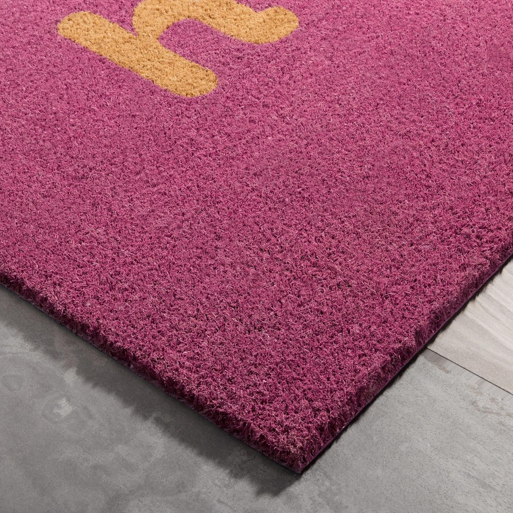 The Hiya Painted Welcome Coir Mat is an excellent choice for your outdoor entryway. This versatile mat is suitable for both indoor and outdoor use, making it perfect for mudrooms, garages, or entryways. Crafted from 100% natural coir, it easily traps dirt and debris. With its heavyweight construction and non-slip rubber backing, this mat provides both style and safety. This welcoming door mat adds a pop of color and design to your entryway with its cheerful printed modern Hiya design. Caring for this mat is easy; wipe, shake, or vacuum clean as needed – use in sheltered areas and covered porches is ideal. HIYA Painted Welcome Natural Coir Outdoor Door Mat Dimensions: 18"x30" Heavyweight, 100% Natural Coir Non-slip rubber backing Traps dirt and debris at entryways and doorways