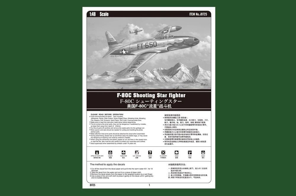 Further Details Title: Hobby Boss F-80C Shooting Star Airplane Model Kit Condition: New Description: The F-80 Shooting Star was the first jet fighter used operationally by the United States Army Air Forces, and saw extensive combat in Korea with the United States Air Force as the F-80. One of its claims to fame is in training a new generation of pilots, especially in its closely-related T-33 Shooting Star trainer development. Kit consists of over 110 parts, detailed fuselage&wing w/accurate design, detailed gear cabin & cockpit, photo etched parts for safety belt etc. Item Height: 71mm Item Width: 245mm Item Weight: 0.33 Kilogramsg Age Level: teens Brand: MMD Holdings, LLC Color: Multicolor Item Length: 218mm Material: Plastic Scale: 1:48 Theme: Vehicle Type: Airplane & Jet Kits Dimensions: 8.6 x 9.68 x 2.81 inches Size: 1/48 Number of Pieces: 110 MPN: 087663171643 Kit includes photo-etched detail parts 1/48 Scale Aircraft Kit contains over 110 parts Missing Information? Please contact us if any details are missing and where possible we will add the information to our listing.