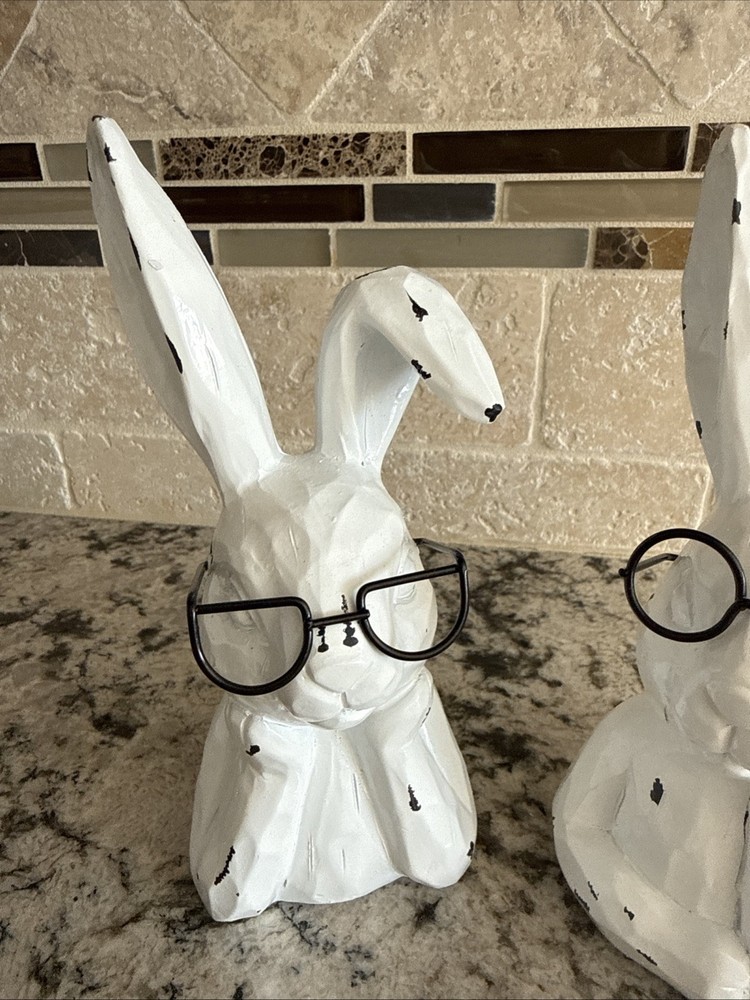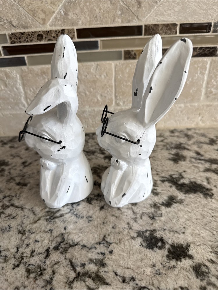 The Hobby Lobby farmhouse style distressed Wire Easter Seasonal Decor 2025 is a contemporary style ceramic figurine of a white rabbit, perfect for any room during the Easter season. This free-standing piece measures 6 inches in height and 3 inches in width, with a matte finish. It is a charming addition to any home decor, representing the theme of animals and dinosaurs. Easy to clean with a damp cloth, this figurine from Hobby Lobby is a unique and delightful accent for the holiday. New without tags