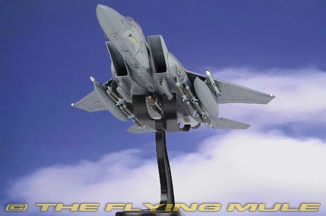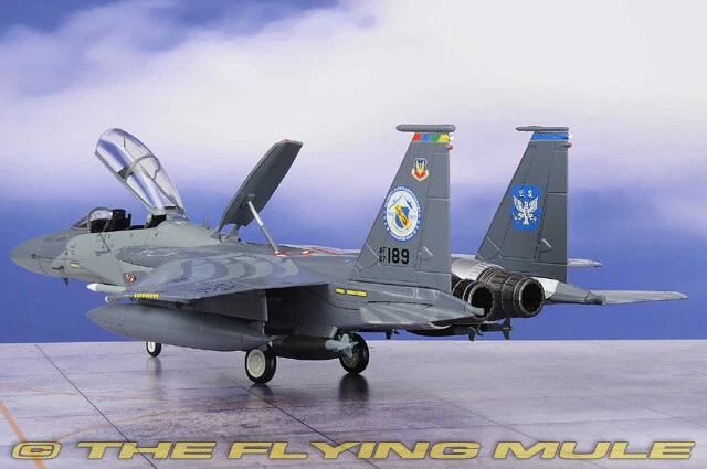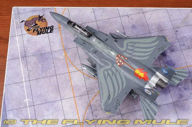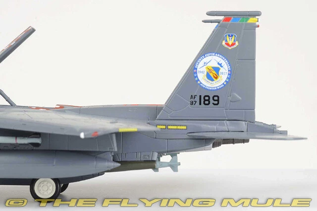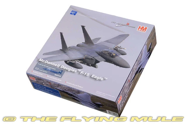 Hobby Master 1:72 Air Power Series HA4538 Boeing F-15E Strike Eagle Diecast Model USAF 4th FW, #87-0189, Seymour Johnson AFB, NC, 4th FW 75th Anniversary 2018 Limited Edition 1:72 Scale Length Width Boeing F-15E Strike Eagle 10.75" 7.25" The 4th Fighter Group was activated Sept. 29, 1942 in Debden, England during World War II. The Eagle Squadrons consisted of American volunteers, until the 4th FG became part of the Army Air Corps and drafted members. In 2017, the 4th Fighter Wing, based at Seymour Johnson AFB, celebrated its 75th anniversary. To help mark the occasion, F-15E Strike Eagle #87-0189, received this stunning new heritage paint scheme. Members of the 4th Equipment Maintenance Squadron fabrication flight worked for more than one month to complete the paint scheme in honor of the 4 FW's 75th anniversary. Boeing F-15E Strike Eagle Designed to meet US Air Force requirements for an air superiority fighter to replace the F-4 Phantom, the F-15 Eagle first flew on July 27, 1972. Following reviews of proposals, the United States Air Force selected McDonnell Douglas's design in 1969 to meet the service's need for a dedicated air superiority fighter. Since entering service in 1976, it is among the most successful modern fighters, with over 100 victories and no losses in aerial combat, with the majority of the kills by the Israeli Air Force. © Copyright 2003-2024 The Flying Mule, Inc. Hobby Master's 1:72 scale F-15 is produced with a high metal content using state-of-the-art manufacturing techniques. The model features near seamless construction as seen on all Hobby Master products, and this is particularly evident with the tight-fitting conformal fuel tanks present on the F-15E variant. Separate open and closed canopy and speed brakes are included, yielding uncompromising detail that functional hinges would lack at this scale. Other fine features include a detailed cockpit interior, a variety of ordnance and drop tanks appropriate to the paint-scheme and landing gear that constructed as completed subassemblies for easy installation. © Copyright 2003-2024 The Flying Mule, Inc. Hobby Master 1:72 Air Power Series The Hobby Master "1:72 Air Power Series" range presents detailed, ready-made diecast models of military aircraft. Hobby Master "1:72 Air Power Series" diecast airplanes feature: Diecast metal construction with some plastic components. Realistic panel lines, antennas, access panels and surface details. Pad printed markings and placards that won't fade or peel like decals. Opening canopies, revealing detailed cockpit interiors. Interchangeable extended/retracted landing gear. Presentation stand to display the aircraft "in flight". Authentic detachable ordnance loads complete with placards. Accurately detailed underside with concealed screwheads. © Copyright 2003-2024 The Flying Mule, Inc.