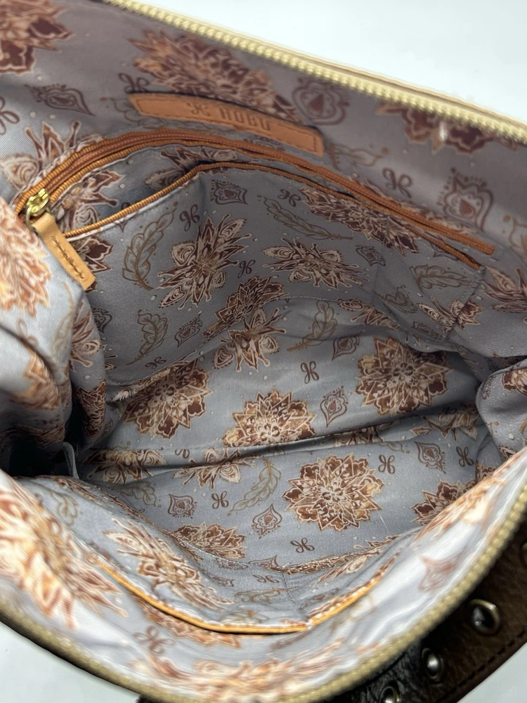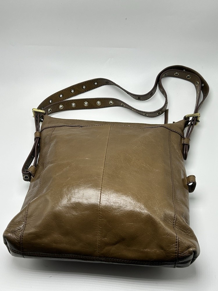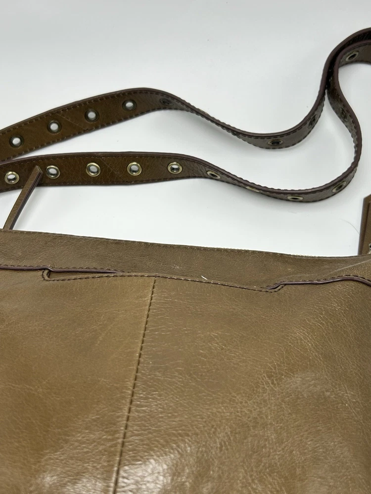 Hobo International Brown Leather Crossbody Shoulder Bag Pre-owned condition Adjustable strap Outer cell phone slot Outer large pocket with snap closure Outer zip pocket Inner zip pocket 3 inner open pockets 12” high 11” across 2” depth Nice!!