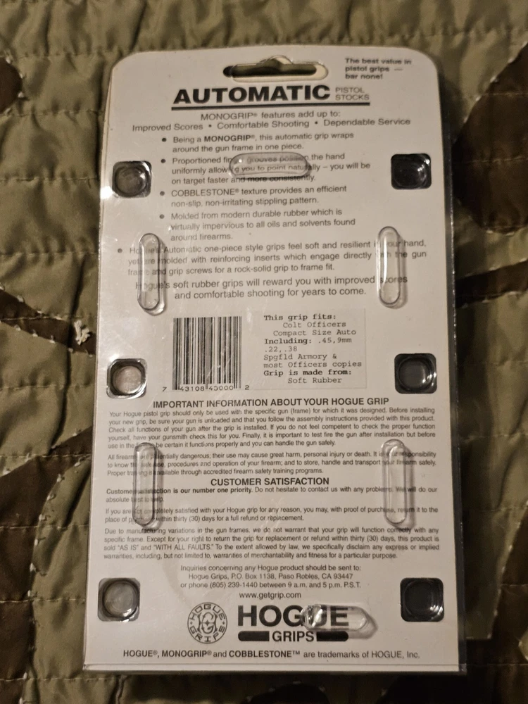 The Hogue Colt 1911 Officers Model Black Rubber Grip with Finger Grooves is designed specifically for the Colt 1911 Officers Model pistol in .45 ACP caliber. This pistol grip is made of rubber material with overmolded construction, featuring finger grooves for a secure grip. It is designed to reduce recoil and absorb shock, providing improved comfort and control during shooting sessions. The Hogue brand is known for producing high-quality pistol grips for various handguns, making this grip a reliable choice for Colt 1911 owners looking to enhance their shooting experience.