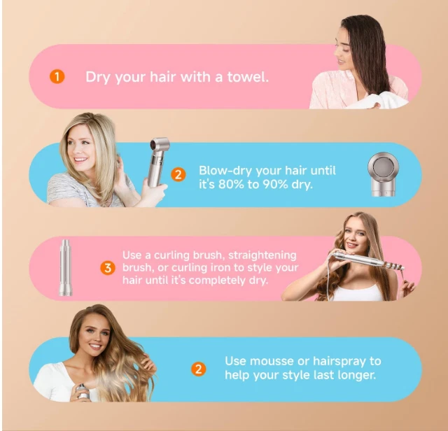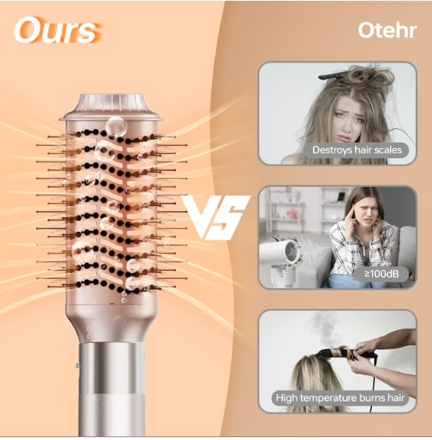 About this item 【Reduced Hair Damage Styling Tools】The HOJOCOJO Hair Dryer Brush redefines hair styling with its innovative hot air technology, offering a gentler alternative to traditional curling irons. Unlike conventional methods that apply concentrated heat to small hair sections, leading to thermal damage, our brush evenly distributes heat across a wider area, minimizing the chance of damage and split ends. Perfect for all hair types desiring a blend of style and care. 【140,000 RPM High-Speed Performance for Efficient Styling】The HOJOCOJO Hair Dryer Brush boasts an impressive 140,000 RPM, ensuring a powerful airflow that significantly reduces drying time in half. This high-speed feature allows for quick styling sessions, making it ideal for those with a busy schedule or for those who want to achieve salon-quality results at home without the lengthy process. 【6-in-1 Versatility for Multi-Functional Styling】This professional hot air brush set is designed to be a one-step solution for all your hair styling needs. With its 6-in-1 functionality, it can dry, curl, straighten, and comb your hair, providing a wide range of styling options. This versatility eliminates the need for multiple tools, making it a space-saving and cost-effective choice for every hair care routine. 【3 Temperature and Air Speed Settings】You can freely adjust the wind power from a gentle breeze to a strong gust to achieve the ideal hair drying effect. In the hot air mode, the HOJOCOJO hair comb can quickly remove moisture from the hair, shorten the drying time. After quickly setting the hair with hot air, use the cold air mode to lock the hairstyle. The cold wind can also help to contract the hair cuticles, reduce the hair's frizzy feeling, and make hairstyle smoother and shinier. 【Ultra-Lightweight Design for Effortless Styling】The HOJOCOJO Hair Dryer Brush is crafted with an ultra-lightweight design that significantly reduces hand fatigue, making it perfect for extended styling sessions. Its ergonomic balance ensures the tool feels comfortable in your hand, allowing for seamless manipulation and control. This thoughtful design element not only enhances the styling experience but also accommodates users with varying hand strengths, promoting a more enjoyable and less taxing hair care routine. 【Noise Reduction Technology】Experience the innovation of the HOJOCOJO Hair Dryer Brush, designed with advanced noise reduction technology that delivers a serene styling experience. This hot air brush is engineered to operate at a whisper-quiet level, ensuring that the only thing you hear is the soft whoosh of air and not disruptive noise. The ultra-silent operation is perfect for early mornings or late-night styling sessions, allowing you to get ready in peace without disturbing your household. Product description HOJOCOJO Hot Air Technology The HOJOCOJO hair blower brush features innovative hot air technology that revolutionizes hair styling, offering a gentler alternative to traditional curling irons. Traditional methods concentrate heat on a small section of hair, causing heat damage, but our blower brush is different. It evenly distributes heat over a larger area, minimizing the likelihood of damage and split ends. It's perfect for people with all hair types, as it shapes the hairstyle while also taking care of the hair 500 Million Negative Ions are Your Hair's Guardians Compared to traditional styling tools, it does not damage your hair with high temperatures, and can also release negative ions to neutralize static electricity and enhance shine. With a high-speed 140,000 RPM motor, it dries quickly without damaging the hair cuticles, leaving your hair smoother, more vibrant, and more stylish Product details Product Dimensions : 12.99 x 12.6 x 3.15 inches; 4.21 Pounds Date First Available : December 5, 2023 Manufacturer : Hojocojo