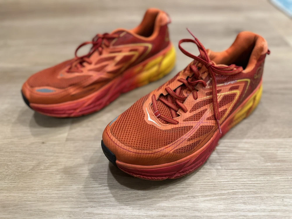 Step into comfort with the Hoka One One Clifton 3, a sneaker that marries performance with style. Designed for men who value both functionality and aesthetics, this athletic shoe features a vibrant red mesh upper and a durable rubber outsole suitable for a variety of activities, from running and jogging to cycling and even casual workwear. The Clifton 3's low-top design and standard-width lace-up closure ensure a snug, supportive fit, while the cushioned insole and fabric lining offer all-day comfort. Whether you're hitting the gym or the pavement, these versatile sneakers are ready to accompany you through all seasons.