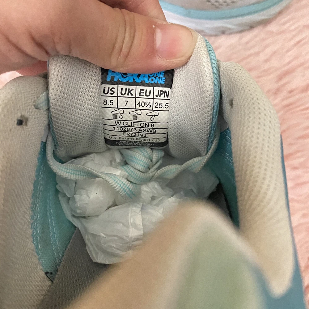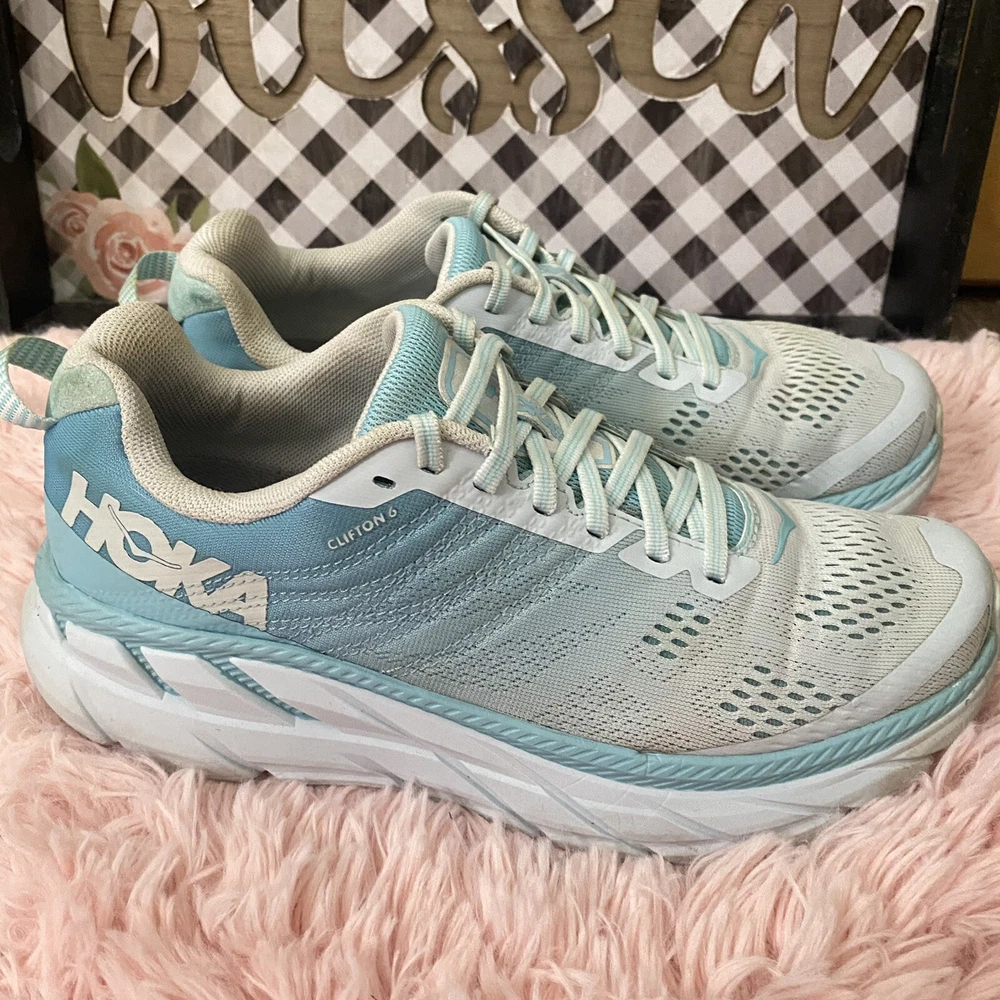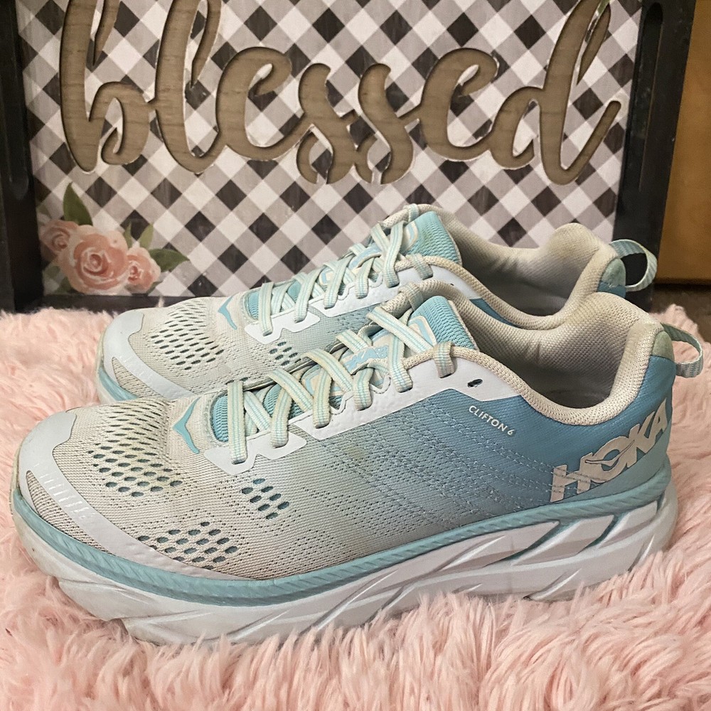 Color: Turquoise US Shoe Size: 8.5 Department: Women Brand: Hoka One One Style: Sneaker Product Line: Hoka One One Clifton Model: Hoka One One Clifton 6 Type: Athletic