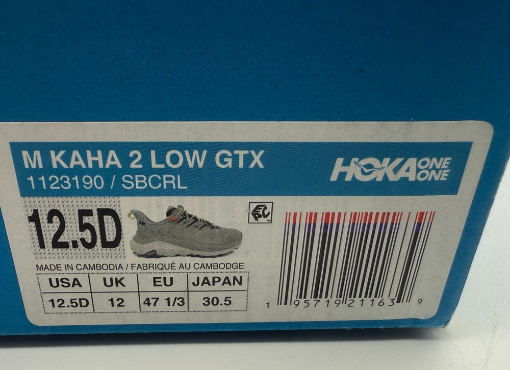 Shoe Width: D Type: Athletic Model: Hoka One One Kaha 2 GORE-TEX Style: Sneaker Department: Men UK Shoe Size: Various Color: Gray EU Shoe Size: Various Brand: Hoka One One Shoe Shaft Style: Low Top Country of Origin: China Upper Material: Nubuck US Shoe Size: Various Style Code: 1123190-SBCRL Product Line: Hoka One One Kaha