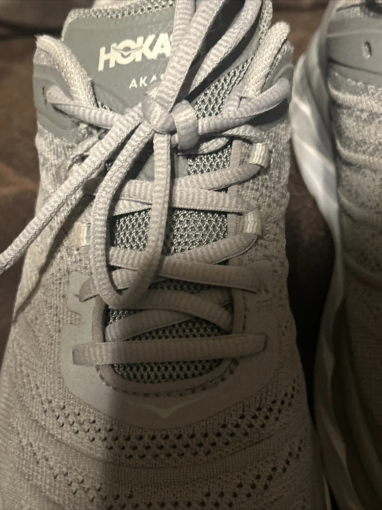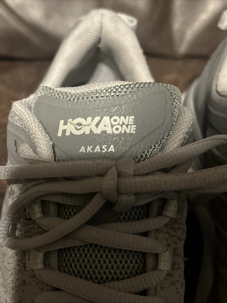 Overall great condition Hoka One One Akasa Gray Women’s size 8.5. Only some slight dirt, and some wear on the bottom of the outsole. Please refer to the pictures for details any questions feel free to ask thank you