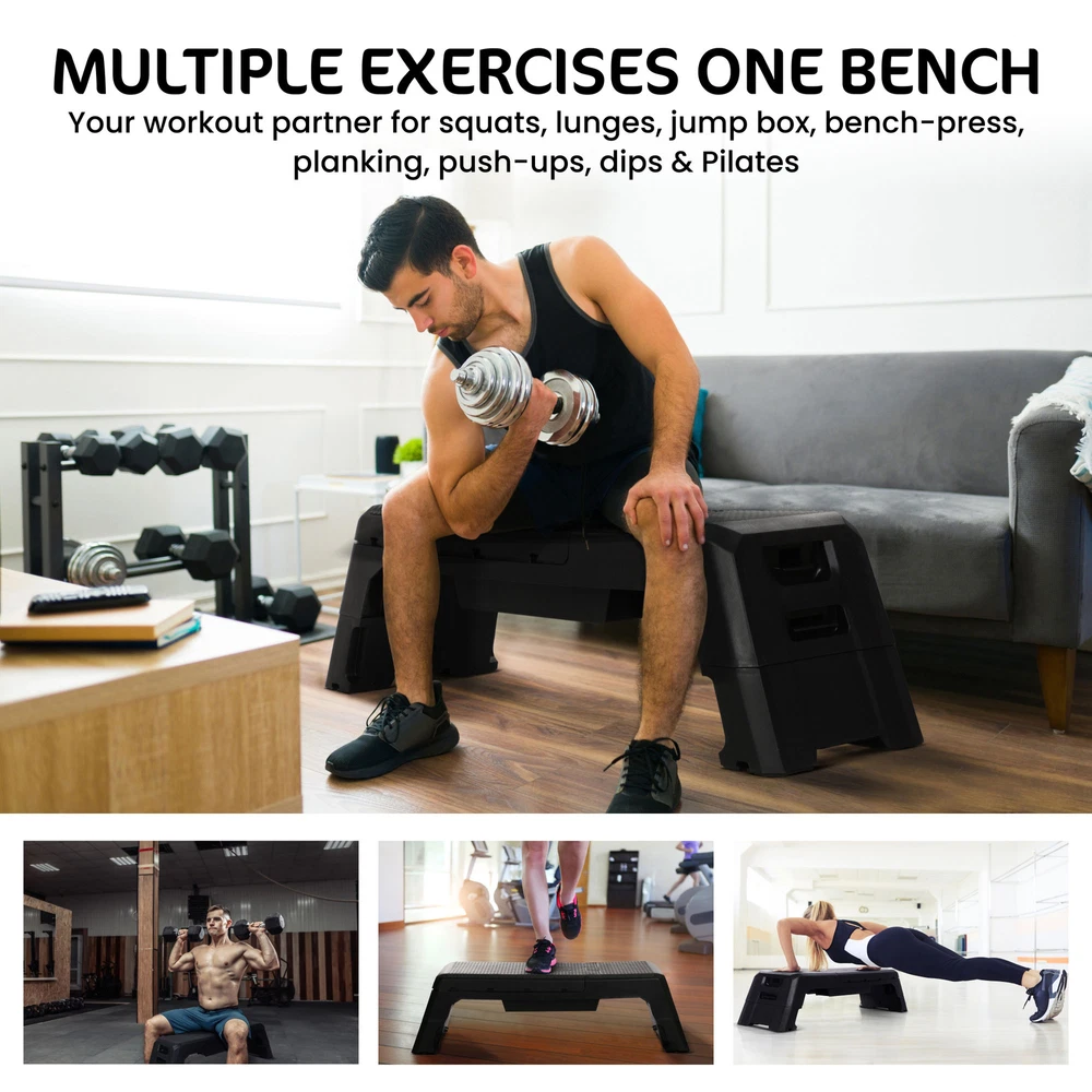 1000s of Everyday Products Fast, Free Shipping & Hassle-Free Returns Store Home Bookmark Us Feedback Contact Us MENU Store Categories Home & Garden Electronics Exercise & Fitness Hardware Outdoor Recreation Toys & Games Vehicle Parts & Accessories Store Support Store Home Bookmark Us Feedback Contact Us Shop By Category Home & Garden Electronics Exercise & Fitness Hardware Outdoor Recreation Toys & Games Vehicle Parts & Accessories Store Newsletter Sign up to receive special insider notifications of our latest deals, promotions, and new listings! Join Now » Fast, Free Delivery Hassle-Free Returns Click Thumbnails to Enlarge Product Description HolaHatha Multifunctional Fitness Weight Workout Bench with Storage Compartment Elevate your fitness experience with the Multifunctional Fitness Aerobic Deck with Internal Storage Compartment from HolaHatha. This versatile tool can be used as a weight bench, step, plyometric, and ramp, helping you to achieve your fitness goals. The feature-rich and outstanding quality make it an excellent workout partner for your home gym. Also, this deck is designed with multiple backrest positions (0 degrees to 80 degrees), 2 height levels (8.5 inches and 14.5 inches), and 3 postures (flat, incline, decline). Simply pull the backrest or leg lever to adjust the angle to your need. Crafted from a durable material, this workout deck can handle up to 440 pounds, ensuring long-lasting use. The legs are locked firmly in place to ensure your safety when used in any flat, incline, or decline positions. Finished with a non-slip rubber backrest and base, this adjustable bench gives you every confidence throughout your workout sessions. The foldable design allows you to store it conveniently, while the 2 internal storage compartments keep your training equipment packed away, making your workout space neat and tidy. Achieve your fitness goal with the Multifunctional Fitness Aerobic Deck with Internal Storage Compartment from HolaHatha. FEATURES Revolutionize your fitness routine with this multifunctional aerobic deck that can be used as a weight bench, step, plyometric, and ramp Ideal use for squats, lunges, jump box, bench press, planking, push-ups, dips, pilates, and other exercises you love Multifunctional aerobic deck with multiple backrest positions (0 degrees to 80 degrees), 2 height levels (8.5 inches and 14.5 inches), and 3 postures (flat, incline, decline) Features (8) upper resistance band clips and (4) lower resistance band clips Equipped with a backrest or leg lever to adjust the angle to your need; Fast adjustment and locks automatically Legs are locked firmly, ensuring your safety when in use Finished with a non-slip rubber backrest and foot base for added safety Crafted from durable material, ensuring long-lasting use Foldable design for easy storage with (2) internal storage compartments, allowing you to keep your other training equipment neatly Maximum weight capacity: 440 pounds Material: Plastic Color: Black Lowered position dimensions (L x W x H): 48 x 13 x 8 inches Raised position dimensions (L x W x H): 48 x 13 x 14 inches Weight: 29.5 pounds Manufacturer warranty: 6-month warranty SPECIFICATIONS Brand HolaHatha Color Black Country/Region of Manufacture Unknown Custom Bundle No Indoor/Outdoor Indoor Item Height 14 in Item Length 48 in Item Weight 29.5 lb Item Width 13 in Material Plastic MPN HH0284 Muscle Group Full Body Questions about this item? Click here to contact us! » Payment To view all acceptable payment methods and sales tax information, make your way to the Shipping and Payments tab. Cancelling Your Order: Your order is important to us and will be processed immediately. If you happen to change your mind after payment is confirmed, our team will do our best to stop the order, but Spreetail cannot guarantee the cancellation. Shipping Spreetail offers FREE ground shipping on all orders within the 48 states with no hidden fees. Most items will ship to Alaska, Hawaii, U.S. territories, and internationally for an additional fee, but please refer to the Shipping and Payments tab to view our shipping rates. With 6 fulfillment centers nationwide, most items are delivered in 1-2 business days and when you place your order before 3 p.m. EST, it will ship that same day. For freight shipments, please allow additional prep time and note that we require a phone number for delivery. FREE curbside delivery for all freight shipments. We ask that you please provide a physical address for your order so it arrives on your doorstep safely and soundly as we cannot ship to APO/FPO/PO box addresses. Our team will ship your order to the PayPal verified address provided, so any address change request made outside of PayPal is not guaranteed. Spreetail ships with Fedex, USPS, Ontrac, Lasership, and United Delivery Service. Returns Returning Your Order: If you need to return something, we will happily accept your return for a refund within 30 days from the day it was delivered to your door. If you miss the 30-day window, we can exchange your item(s) so that you can find something else you'll love. Please see the Shipping and Payments tab for full Return Policy details. Return Process: 1. Submit return request via the eBay Returns Portal. 1. Find the item in My eBay under Purchase History and select Return this item from the More actions drop-down menu. 2. Select the reason for the return. 2. Please ship the product back to Spreetail with all original parts. 1. Return shipping is the responsibility of the customer. 3. Our returns team will quickly ship your replacement or refund your payment. Please contact Customer Service for additional warranty information. Contact Us Questions or comments? We welcome your inquiry! Please click here to contact us, and we will get back to you as quickly as possible. Sign Up for Our Newsletter » Fast, Free Delivery Hassle-Free Returns Shop By Category Store Home Bookmark Us Feedback Contact Us Copyright © Spreetail . All rights reser