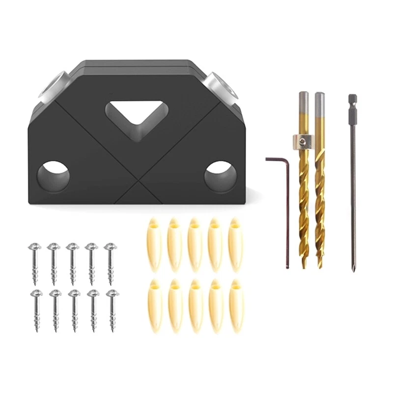 Features: Achieve precise drilling with the screw jig, ensuring accurate hole alignment and stability for woodworking projects. This multifunctional drilling aid is durable and resistant to damage, providing long lasting durability. Suitable for both diy enthusiasts and professional woodworkers, this versatile tool is perfect for anyone looking to improve their woodworking skills. Whether you're working on home renovations or projects, the drill locator can be used for various applications, such as building bookshelves, wardrobes, and cabinets. Experience the convenience and accuracy of drilling with ease, even if you're a beginner. This tool is designed to simplify your woodworking tasks and deliver excellent results. Specifications: Material:Aluminium Alloy Color:Black Size:As Picture Shown Model Number: Pocket Hole Jig Application: Working Tool DIY Supplies: Woodworking Type: Combination, Drills Drilling 45 degree Surface Anodized Application: Use pocket-hole plugs to create invisible joint Package Includes: Set Pocket Hole Jig note: ①.Please allow 1-2cm errors due to manual measurement, make sure that you do not mind before you order. ②.Due to the difference between different monitors, the picture may not reflect the actual color of the item. Thanks for your understandings.
