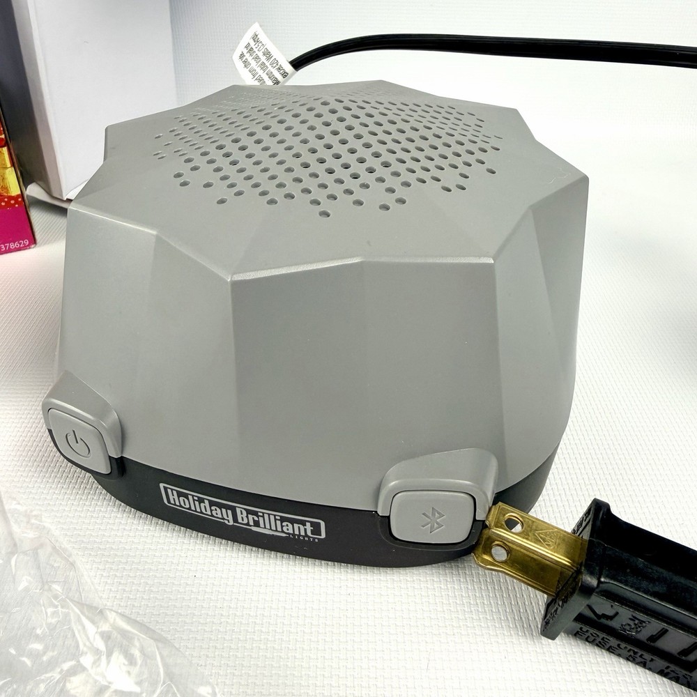 The Holiday Brilliant Rhythm Of Lights Music Box is a festive and enchanting addition to your Christmas decor. This Bluetooth-controlled musical light features a geometric design in gray plastic, perfect for indoor use with a wall plug-in power source. The speaker in the music box plays soothing music while the LED lights create a brilliant rhythm of lights. Add this Holiday Brilliant product to your home for a touch of holiday cheer and a smart home experience with Bluetooth connectivity. Tested works great, shows no wear comes with all original items packaging and instructions :)