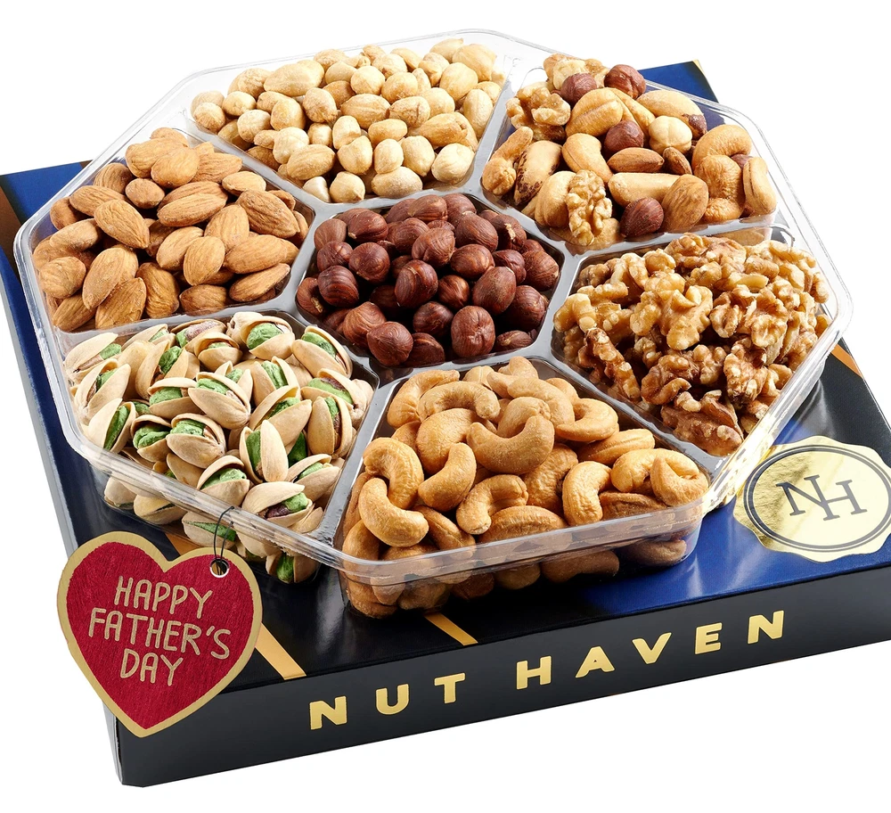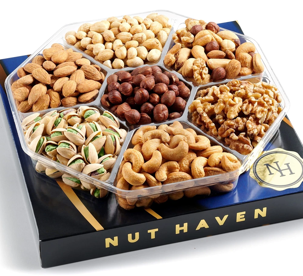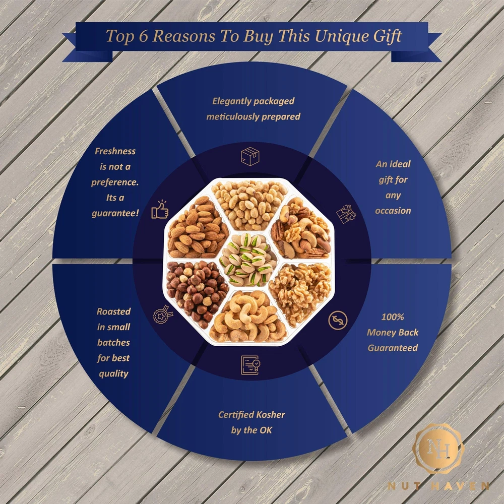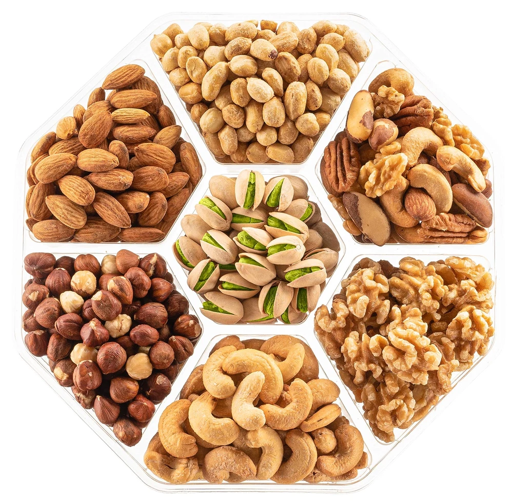 ★You’d be absolutely nuts not to try our exceptional nuts! The most discerning customers – prestigious corporations, retail outlets, and hospitality venues – choose gift baskets because they know that no corners are cut. Simply, We are proud to hear from our customers that “gift baskets look the best and taste the best“ ★Now, you and your loved ones can enjoy them too! A gift basket is the perfect choice to send best wishes and love to anyone, for any occasion: “I love you”; “Happy Birthday”;“Happy Anniversary”; “Happy Holidays”; “We appreciate your business”; “You have been selected as Employee of the Year”; “Get Well Soon”; “It’s a Boy!”; “It’s a Girl”; “I’m Sorry”...They all sound better – and taste better! – with . ★There are nuts…and then there are nuts! A Bunch of nuts in a batch may look the same to most of us, but the mavens at know the difference between a typical nut and spectacular nut. The only nuts that make it into a basket are those that are naturally rich in taste and texture and have been roasted to perfection along with that perfect flavor. ★Freshness is not a preference; it’s a ! This Healthy gift basket features a wide variety of hand-picked tasty nuts. The nuts are dry roasted in small batches with no oil or preservatives and even seasoned giving you a perfect bite every time. ★ We go the extra mile so you can taste the difference. There’s a assortment of Dry Roasted Salted Peanuts, Dry Roasted Salted Almonds, Dry Roasted Salted Pistachios, Dry Roasted Salted Cashews, Raw Walnuts, Hazelnuts, and Mixed Nuts. Click the “Add to Cart” button now, and the magicians at will send a friend, family member, or colleague a delicious box of nuts in a couple days! 🎁 ELEGANTLY PACKAGED GIFT BASKET LOADED WITH TASTY NUTS - Forget flowers and chocolate, give a gift that’s delicious and healthy! In this bundle pack of Healthy Snacks, you get approximately pound of tasty nuts meticulously packaged in a boutique-style gift box. 🥜 VARIETY OF FRESH TASTY NUTS FOR EVERYONE TO ENJOY – The deluxe mixed nut box contains Roasted Salted Peanuts, Roasted Salted Almonds, Roasted Salted Pistachios, Roasted Salted Cashews, Raw Walnuts, Roasted Salted Hazelnuts, and Mixed Nuts. SPECIFICATIONS – Package dimensions: 10x10x1.3. Net weight: Approximately 1LB. OK Certified, Vegan. 👌 THERE ARE TREATS... AND THEN THERE ARE TREATS! - Batches of nuts may look the same to most of us, but the mavens at know the difference between a typical treat and a edible delight. The only items that make it into a basket are carefully selected nuts that are naturally rich, ideally textured and roasted OR sweetened with the perfect flavor. 💝 MOUTH-WATERING GIFT IDEA FOR A VARIETY OF OCCASIONS – Out of this world gift idea for any occasion like Corporate Events, Holidays, Birthdays, Christmas, Thank You, Sympathy, Get Well, Father's Day, Mother’s Day, Easter, and more!
