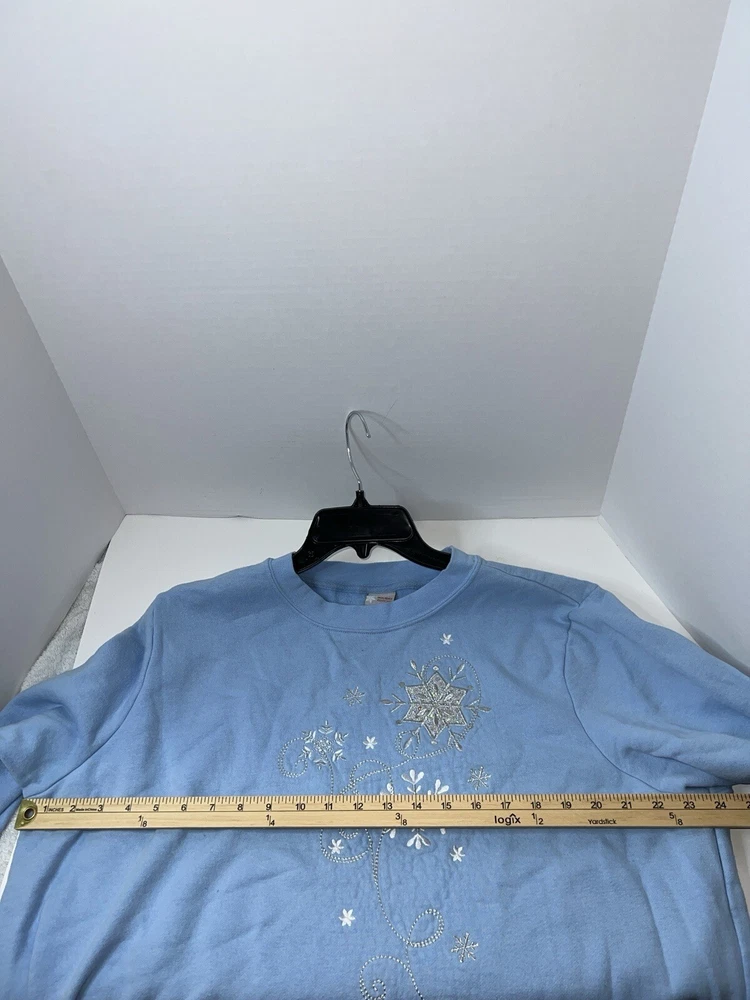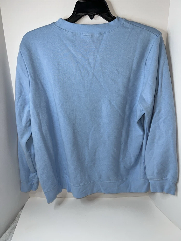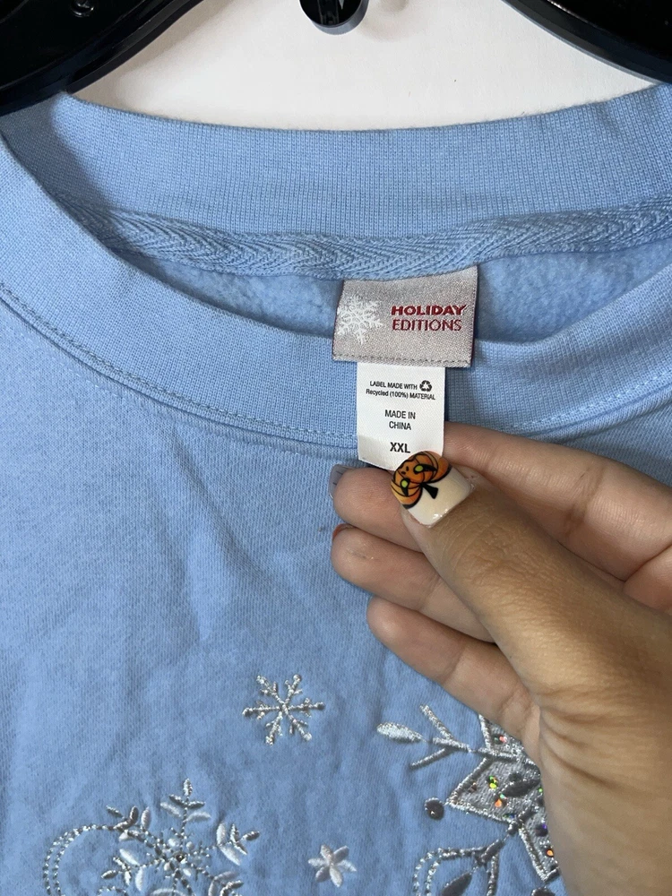Elevate your activewear game with this Holiday Editions blue sweatshirt. The regular fit pullover features a classic crew neck and long sleeves, making it a perfect choice for all seasons. The Fair Isle pattern adds a touch of retro charm, while the jersey fabric ensures comfort and durability. Ideal for walking, skiing, and hiking, this sweatshirt is designed to keep you warm and stylish during your favorite outdoor activities. The size 2XL fits most women, and the blue color complements any outfit. Whether you're hitting the slopes or enjoying a leisurely walk, this sweatshirt is a must-have addition to your wardrobe. M8