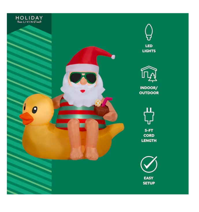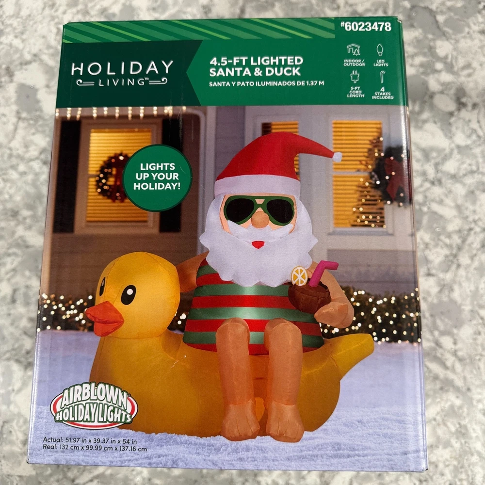 HomeHoliday Living 4.5 Ft Lighted Santa & Duck Airblown Christmas Inflatable New