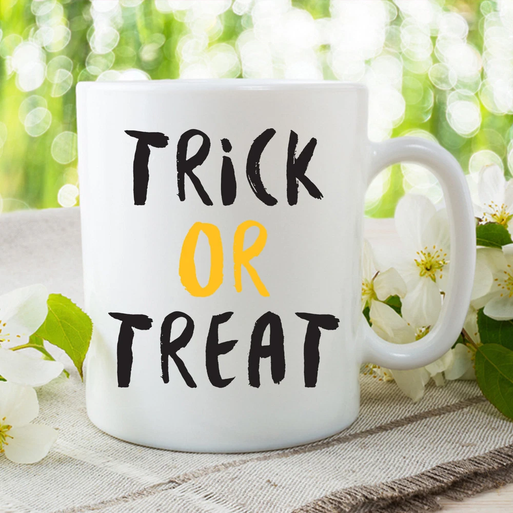 Holiday Mugs Trick Or Treat Halloween Mug Coffee Mug Halloween Decor Fall Mug Product Details.. This high quality 11oz. ceramic white mug has a premium hard coat that provides crisp and vibrant color reproduction sure to last for years. Perfect for all hot & cold beverages. The highest quality printing possible is used. It will never fade no matter how many times you wash it. Material: 100% Ceramic. Print both sides. Dishwasher and Microwave Safe. High Gloss + Premium White Finish. Printed in the U.S.A. Personalized & Custom. We support personalized and custom mug to add custom, when placing an order, you can add notes to the "order note" in shipping address section. Also you can contact us directly via message. Shipping Info. Ready to ship in 1 to 2 business days, All products are made-to-order and proudly printed in the United States. Shipped by USPS and DHL, You will receive your order in 5-7 days. Replace & Refund. All products are defective during shipping broken, chipped will be replaced free of charge. You are not satisfied with the product, we will refund 100% money to you. If any other issues arise, please do not hesitate to message, we would be more than happy to assist you.