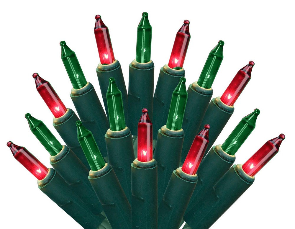 Holiday Pride 100 Red & Green Bulb Light String Set with Green Wire. UL Listed - Conforms to UL Standards. Safe for Indoor & Outdoor Use - 120 Volt. This Light Set consists of 2 independent circuits of 50 lights. Each circuit can be made to steady burn or flashing mode by replacing a regular bulb with a Red Tip Flashing Bulb (2 Red Tip Flashing Bulbs are included with this set). Total Length of Light String: 20.75 Feet. Lighted Length: 18.5 Feet. Spacing at the ends: 3.5" end on female adapter - 12" end on male adapter. If one bulb burns out the rest will remain lit. Fuse-protected, end-to-end connector allows up to 5 sets to be connected together in a continuous strand. Use these green and red mini lights on windows, trees, wreaths, garlands, outdoor bushes and many more applications! 100 Red and Green Mini Lights with Green Wire - Steady Burn & Flashing Modes UL Listed - For Indoor & Outdoor Use End to End Connectors - 5 Sets Of Light Strings Can Be Connected Together Pre-Tested, Warranted to Light - If 1 bulb burns out, the rest remain lit. - Includes 2 Flasher Bulbs, 2 Regular Bulbs, & 1 Fuse Approximate Lighted Length: 22.6 Feet - Total Length: 24 Feet - 2.75" Spacing between Bulbs - 12" Lead & 3.5" Tail These Red and Green Christmas Tree Lights with Green Wire plug in easily & are perfect for using as Christmas Tree Lights , Patio Lights , Outdoor Bush Lights , Christmas Wreath Lights , or any area where you want to add ambience and a magical glow ! " Holiday Pride: The Brand Preferred by Professional Decorators "