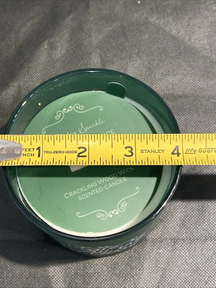 Holiday Sparkle Emerald Spruce Crackling Wood Wick Scented Candle. Measurements and details as per pictures.