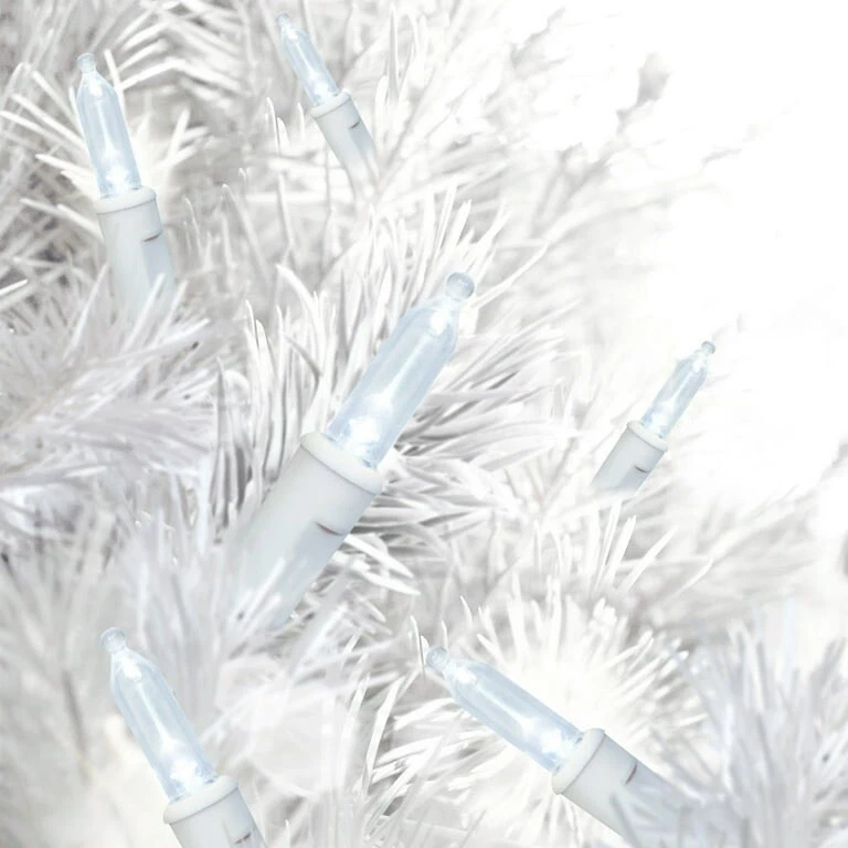 Brand new! Cool white light, white wire, 100 total bulbs. Perfect for making any occasion more festive or bright. Light up Santa's Workshop this holiday season with the Holiday Time 100-Count LED Mini Christmas Lights, with White Wire. Just the thing to illuminate your Christmas tree, you can connect up to 45 sets of these mini lights and make sure every branch is shining bright. This festive light set is also great for lighting windows, decorating the front doorway or porch railings, or creating a photo-worthy backdrop. The lights save up to 80% on energy costs, versus regular incandescent bulbs. Perfect for decorating your house or yard for parties or carolers, the white wire blends in with light backgrounds for subtle decorating, and the durable bulbs are break-, fade-, and chip-resistant. These lights have a lighted length of 19.5 feet and a total length of 21 feet. The lights are available in 9 festive colors:Cool White, Warm White, Multicolor, Red, Blue, Green, Purple, Pink, and Amber. Make your house the most festive in town this year with the Holiday Time 100-Count LED Mini Christmas Lights, with White Wire. 100-Count LED mini Christmas lights Lighted length: 19.5 feet Total length: 21 feet Light bulb spacing: 3.25 inches Ideal for indoor and outdoor use Connect up to 45 sets of this exact same light White wire blends in with light backgrounds Great for holiday parties and decorating Customer service: (800) 833-3390 For product parts contact customer service at 1-800-833-3390 Monday - Friday 10:30am – 4:30pm EST Available in 9 festive colors: Cool White, Warm White, Multicolor, Red, Blue, Green, Pink, Purple, and Amber