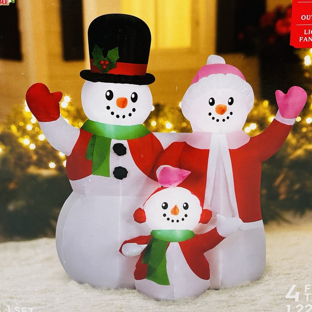 Holiday Time 4 FT Snowman Family Scene Christmas Airblown Inflatable Yard Decor
